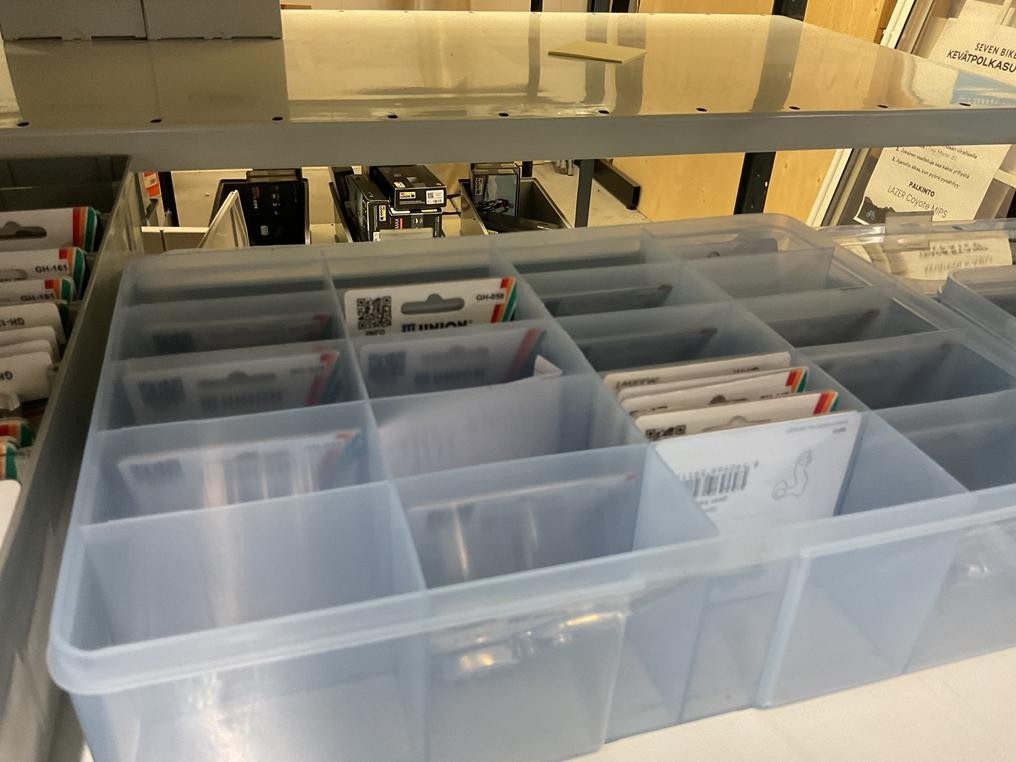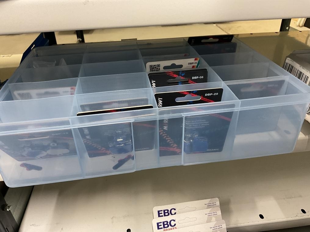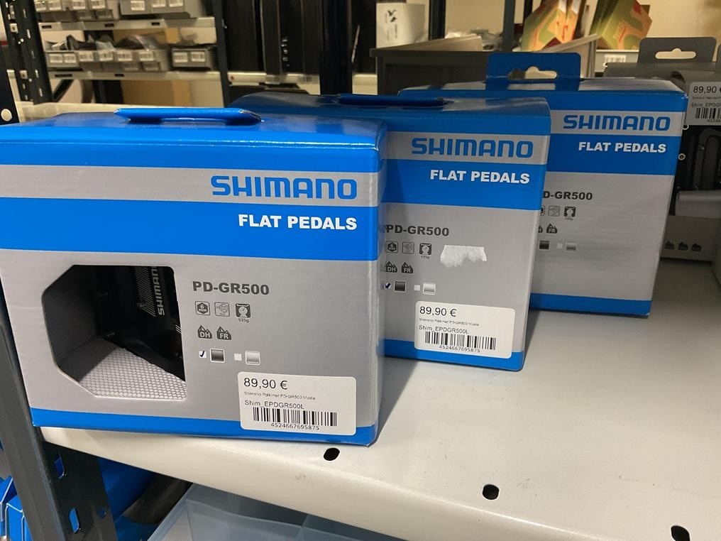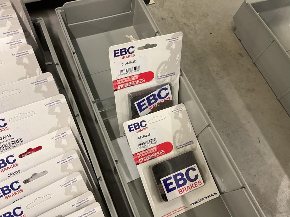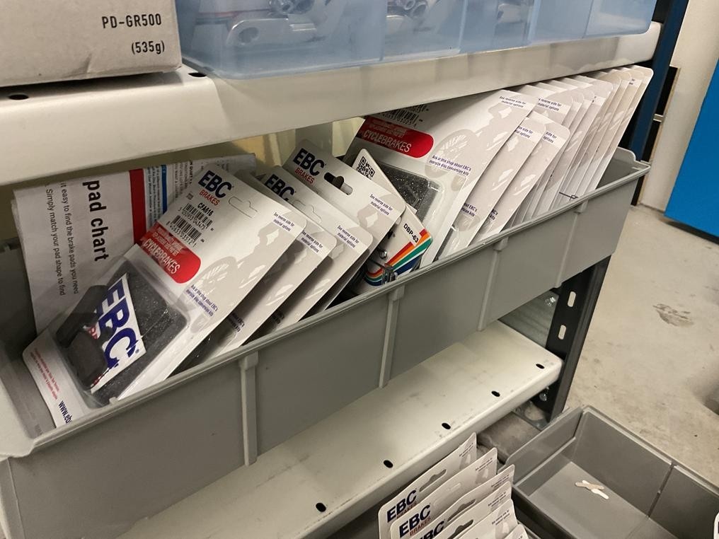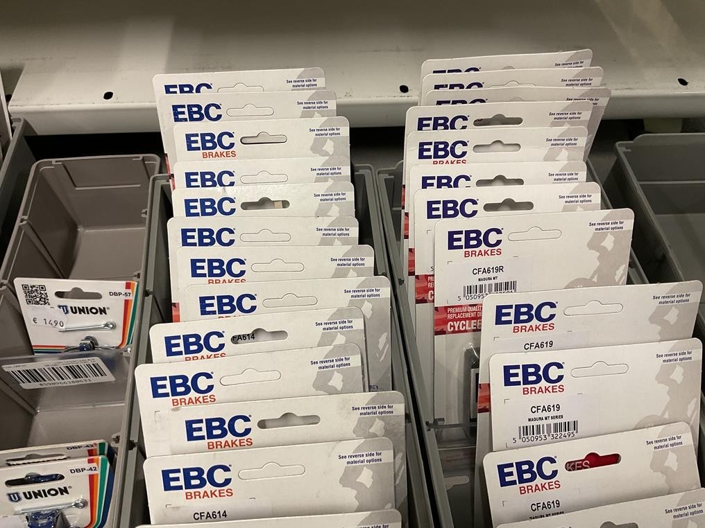 Myyntikohteet » 10. Seven Bikes Oy:n konkurssipesä, TAMPERE (3215327-1), 27.11.2025 » T58. 3-hyllytasolla ja lattialla olevat polkupyörien polkimet / jarrupalat EBC / Shimano yhteensä 103 kappaletta