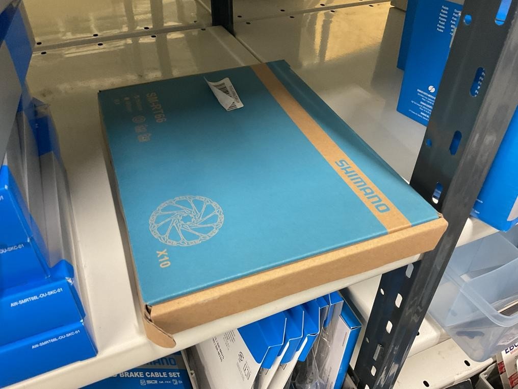 Myyntikohteet » 10. Seven Bikes Oy:n konkurssipesä, TAMPERE (3215327-1), 27.11.2025 » T61. 3-hyllytasolla olevat polkupyörien varaosat Shimano (jarrulevyt, jarruletkut) yhteensä 64 kappaletta