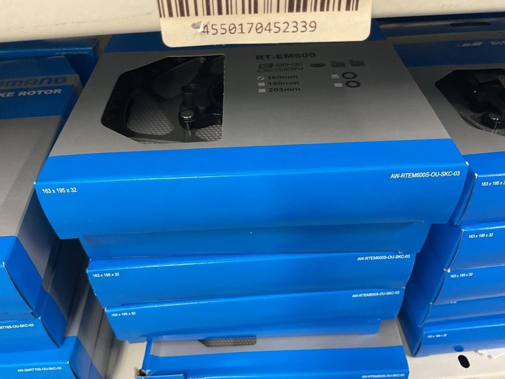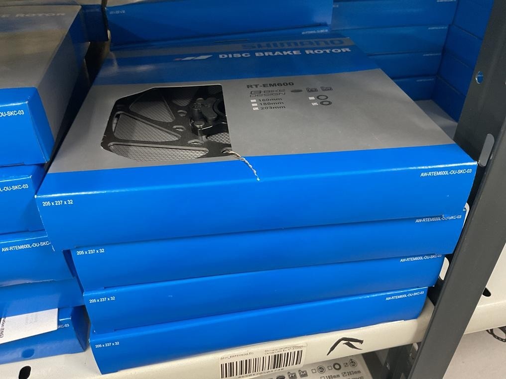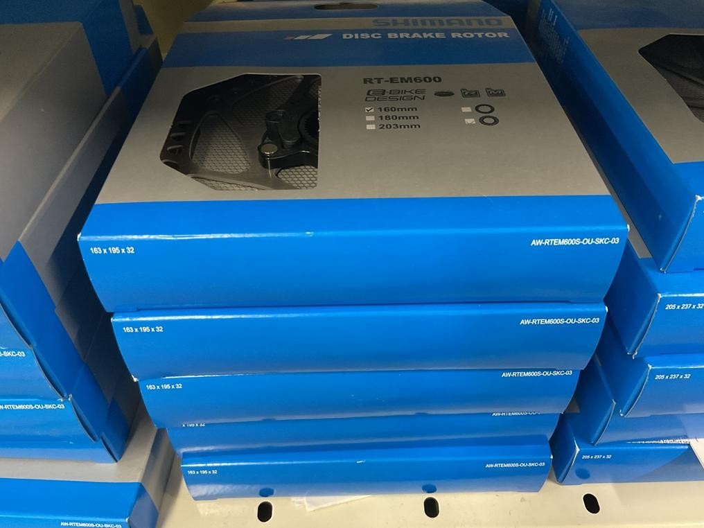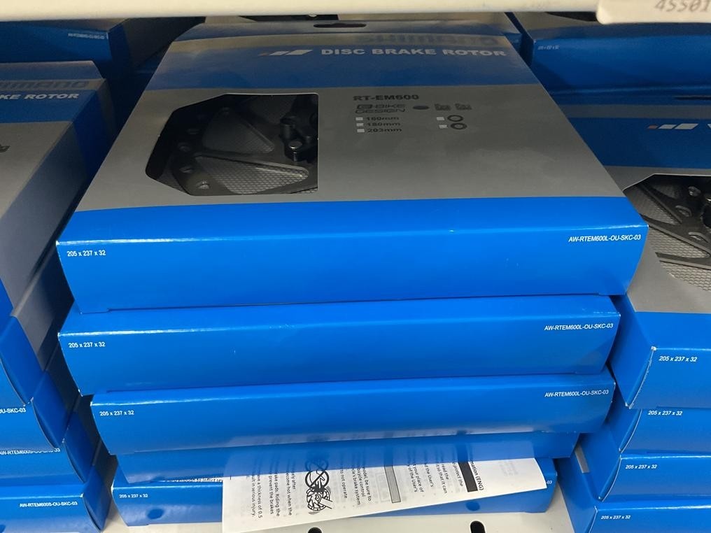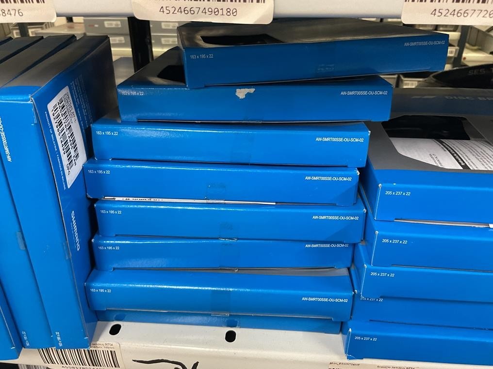 2-hyllytasolla olevat polkupyörien varaosat Shimano (jarrulevyt) yhteensä 54 kappaletta