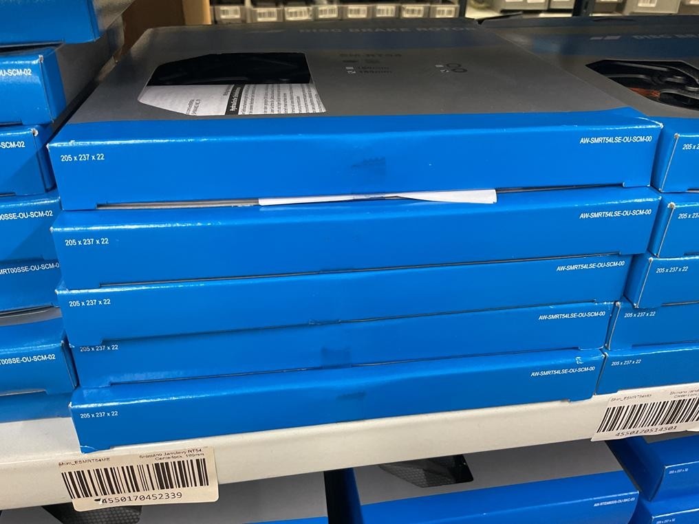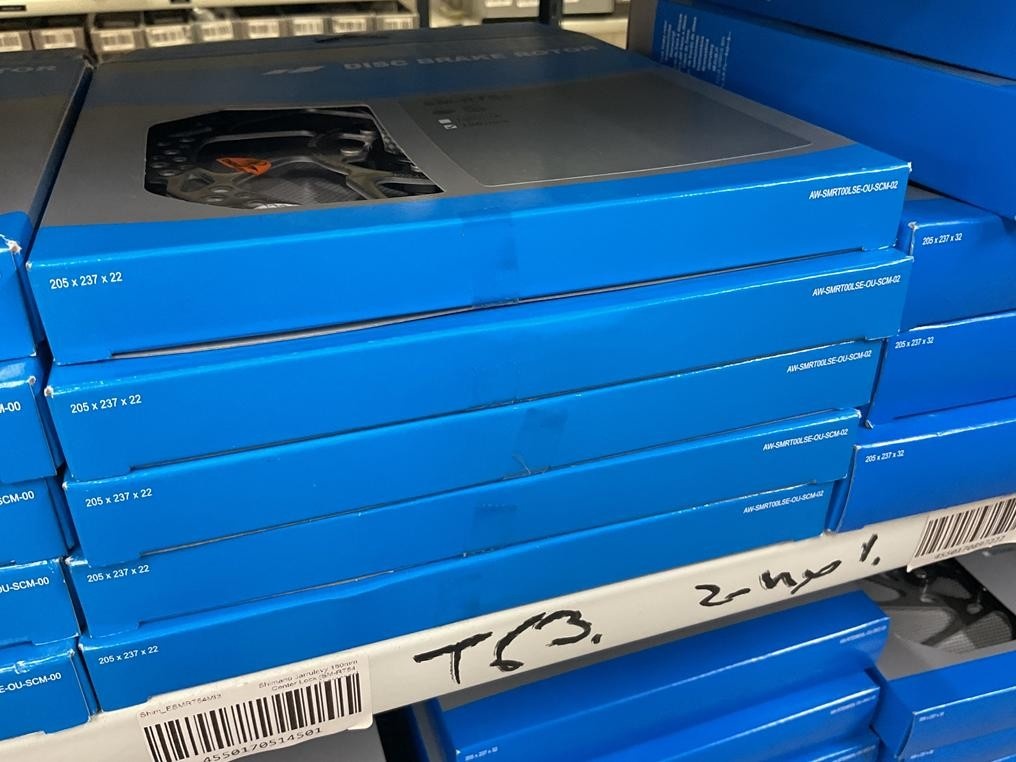 Myyntikohteet » 10. Seven Bikes Oy:n konkurssipesä, TAMPERE (3215327-1), 27.11.2025 » T63. 2-hyllytasolla olevat polkupyörien varaosat Shimano (jarrulevyt) yhteensä 54 kappaletta