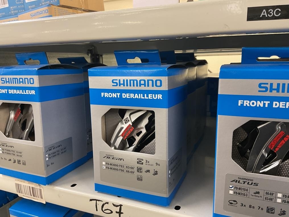 Myyntikohteet » 10. Seven Bikes Oy:n konkurssipesä, TAMPERE (3215327-1), 27.11.2025 » T67. 3-hyllytasolla olevat polkupyörien varaosat Shimano (etuvaihtajat, takavaihtajat ym.) yhteensä 36 kappaletta