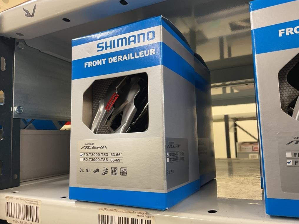 3-hyllytasolla olevat polkupyörien varaosat Shimano (etuvaihtajat, takavaihtajat ym.) yhteensä 36 kappaletta