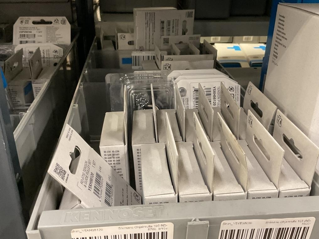 Myyntikohteet » 10. Seven Bikes Oy:n konkurssipesä, TAMPERE (3215327-1), 27.11.2025 » T68. 3-hyllytasolla olevat polkupyörien varaosat Shimano (ohjainrullat, vaihteenvaihtajat, vaihdevivut ym.) yhteensä 34 kappaletta