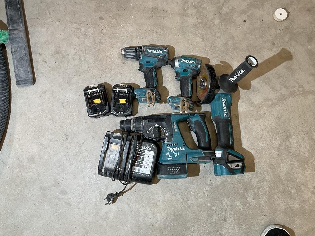Myyntikohteet » 3. Rakennustyöt Pulkkinen Oy:n konkurssipesä, RAISIO (2912661-9), 28.11.2025 » 33. Makita akkutyökalut 4 kappaletta + akut 2 kappaletta ja laturi