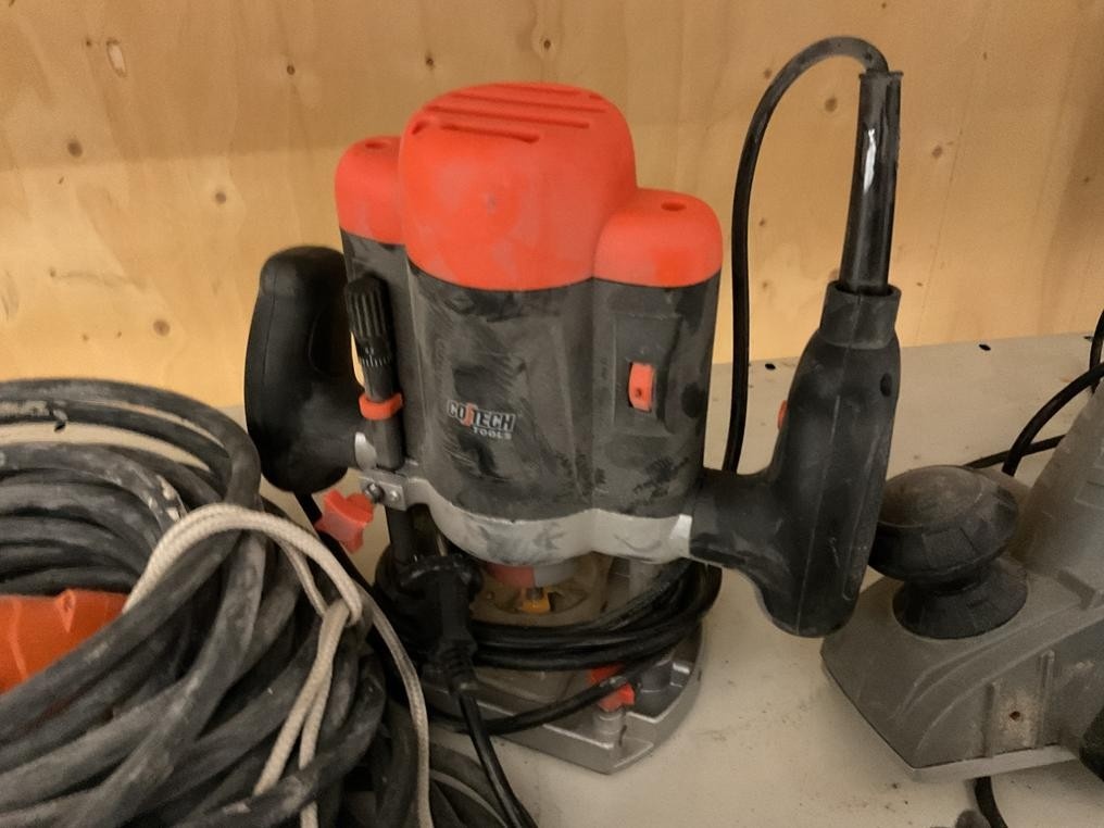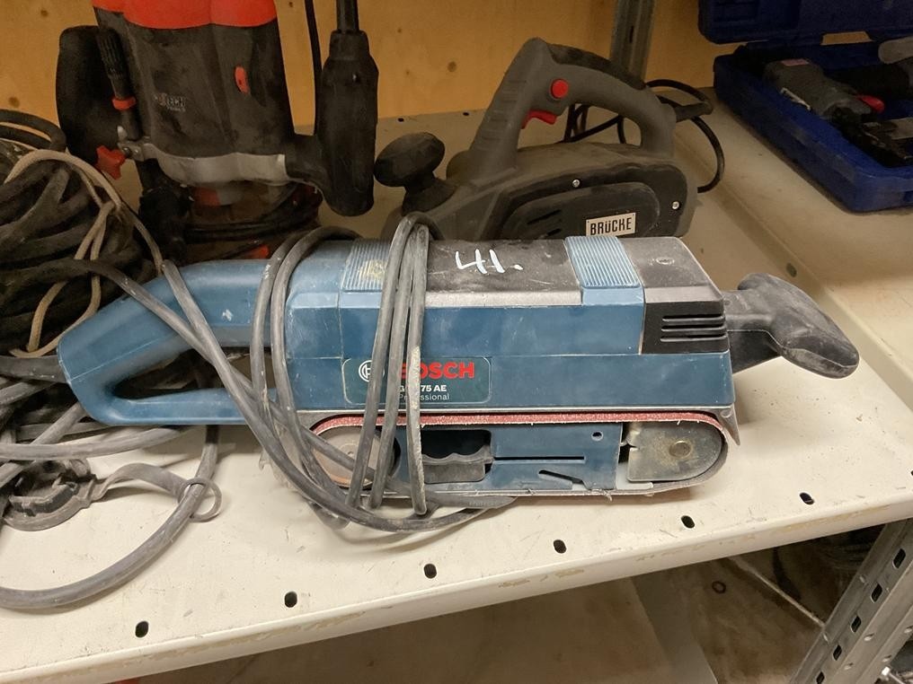 Myyntikohteet » 3. Rakennustyöt Pulkkinen Oy:n konkurssipesä, RAISIO (2912661-9), 28.11.2025 » 41. Jatkojohto, nauhahiomakone Bosch, sähköhöylä Brucke, jyrsin Co Tech Tools