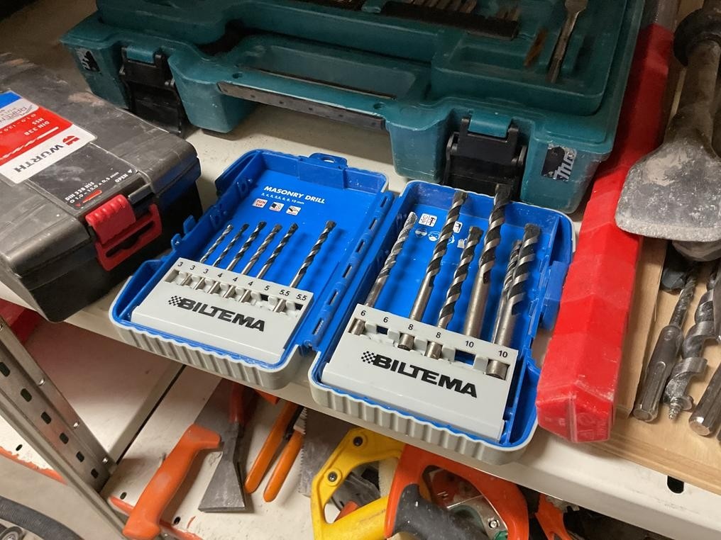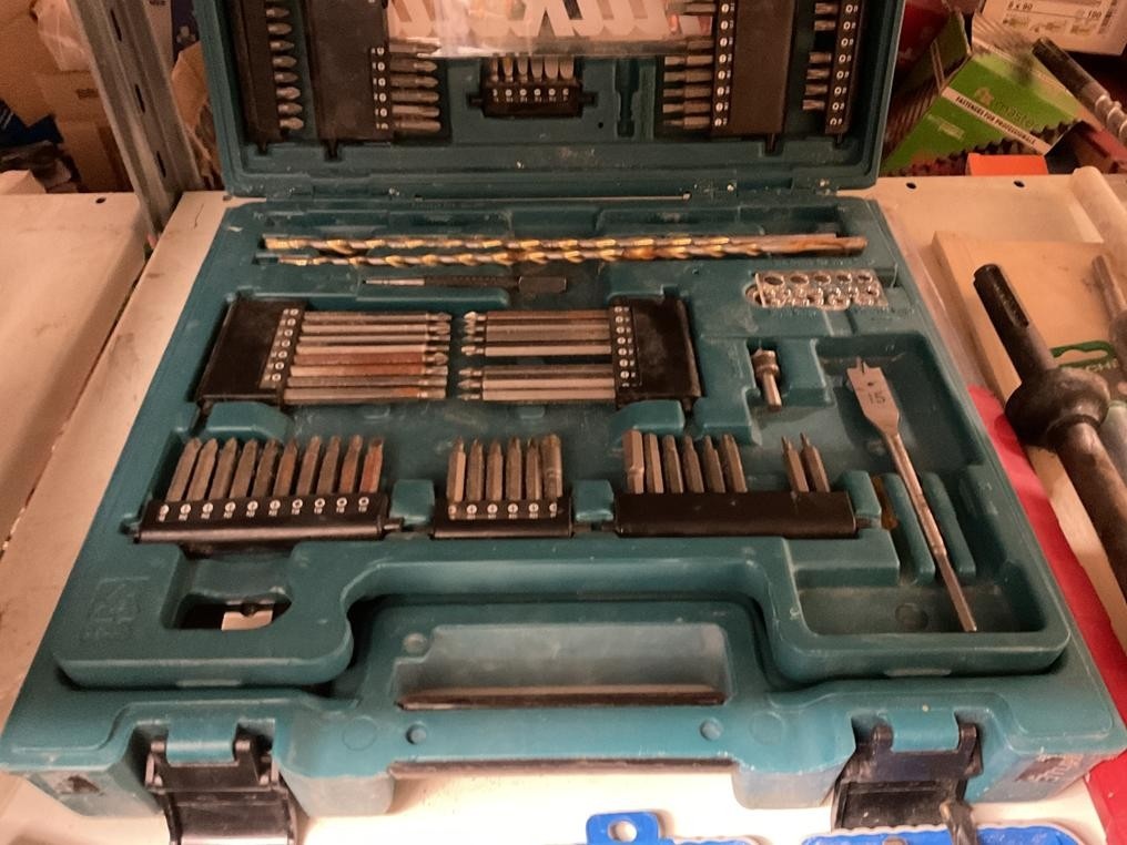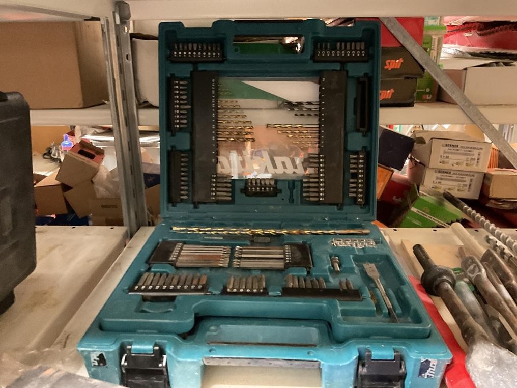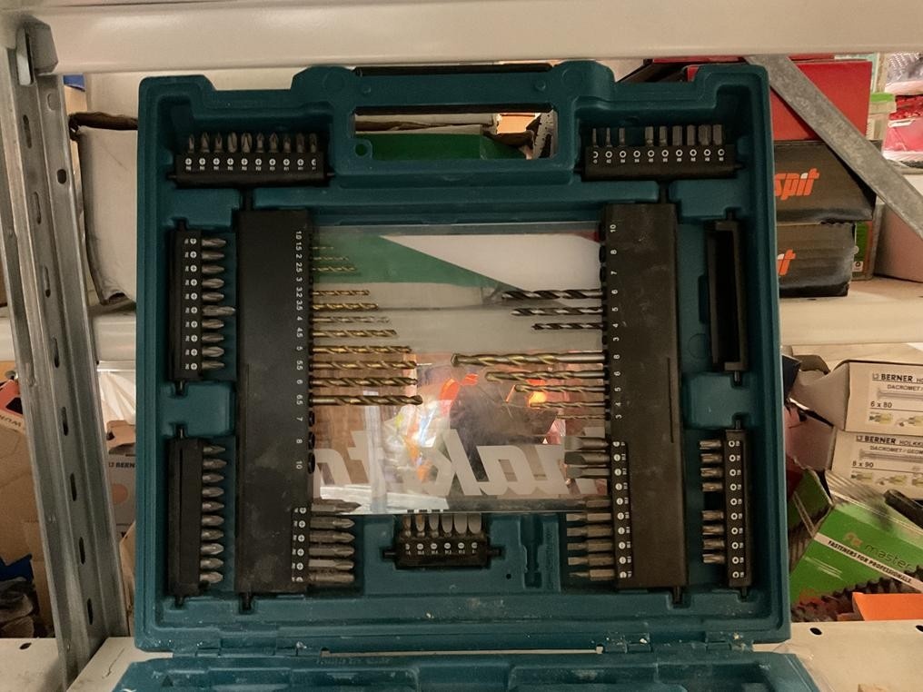 Myyntikohteet » 3. Rakennustyöt Pulkkinen Oy:n konkurssipesä, RAISIO (2912661-9), 28.11.2025 » 44. Hyllytasolla olevat poranterät, Makita kärki- / poranteräsarja laatikko