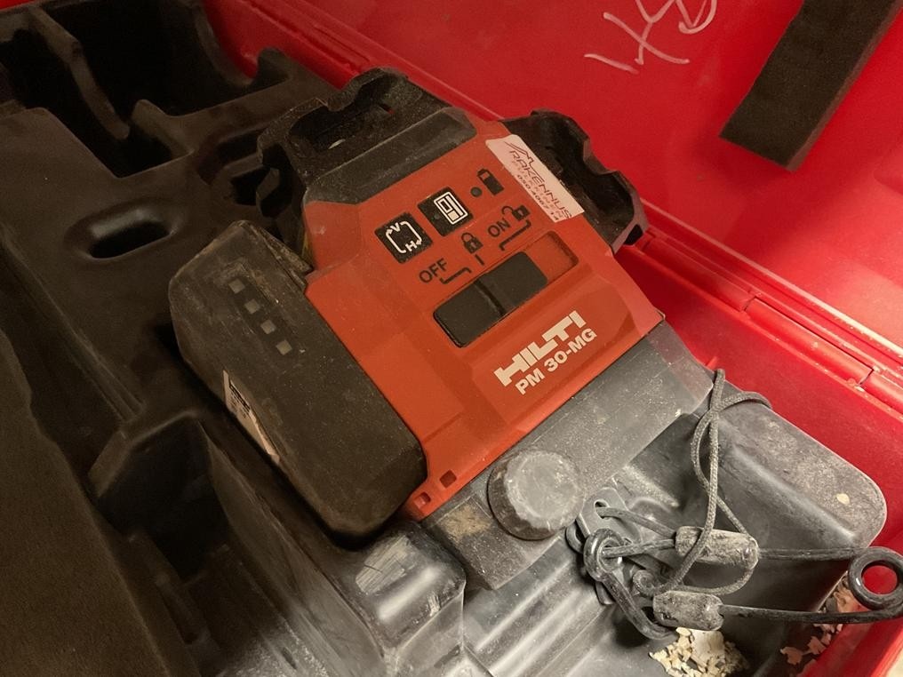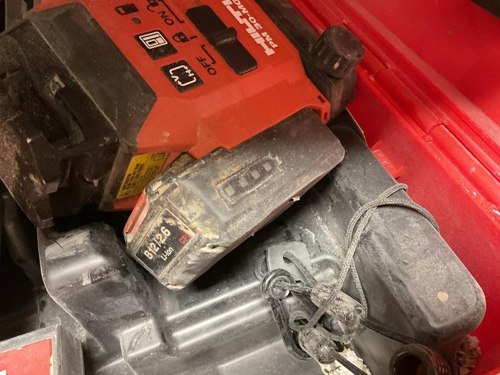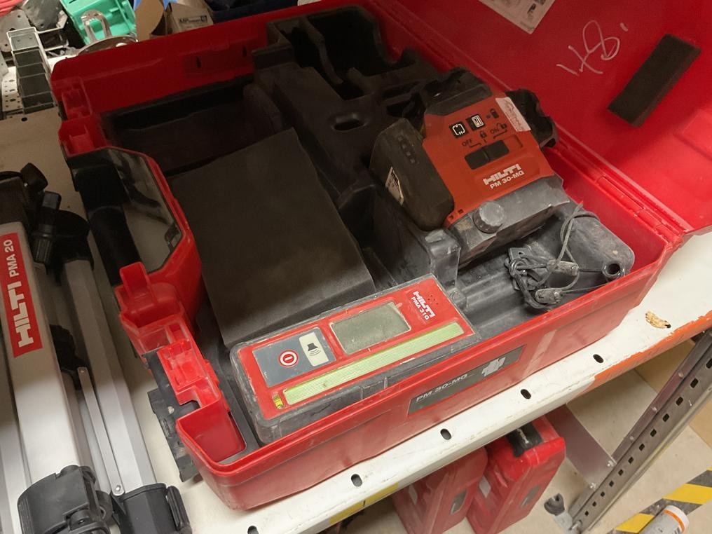 Myyntikohteet » 3. Rakennustyöt Pulkkinen Oy:n konkurssipesä, RAISIO (2912661-9), 28.11.2025 » 48. Hilti PR 2-HS pyörivä tasolaser (ei akkua), Hilti kolmijalka, Hilti PM 30-MG multilinjalaser (1 kpl akku)