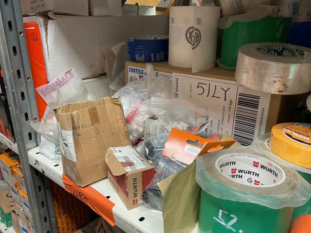 Myyntikohteet » 3. Rakennustyöt Pulkkinen Oy:n konkurssipesä, RAISIO (2912661-9), 28.11.2025 » 52. Hyllytasolla olevat teipit