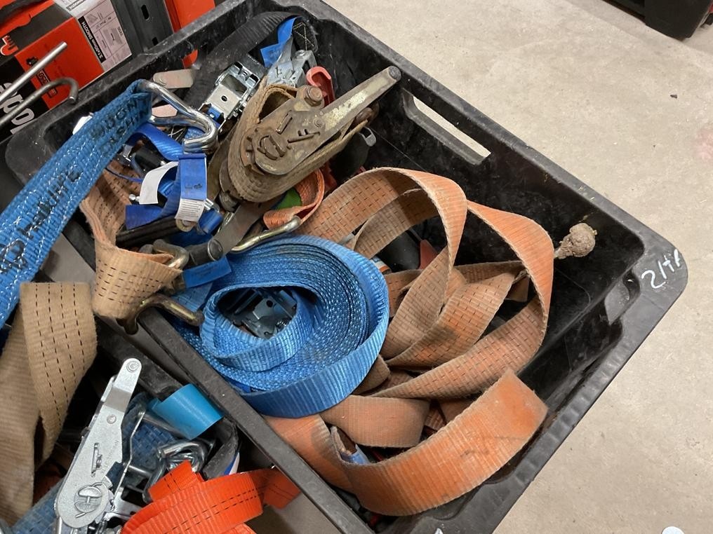Myyntikohteet » 3. Rakennustyöt Pulkkinen Oy:n konkurssipesä, RAISIO (2912661-9), 28.11.2025 » 57. Kahdessa muovilaatikossa olevat sidontatarvikkeet (kuormaliinat, kiristimet ym.)