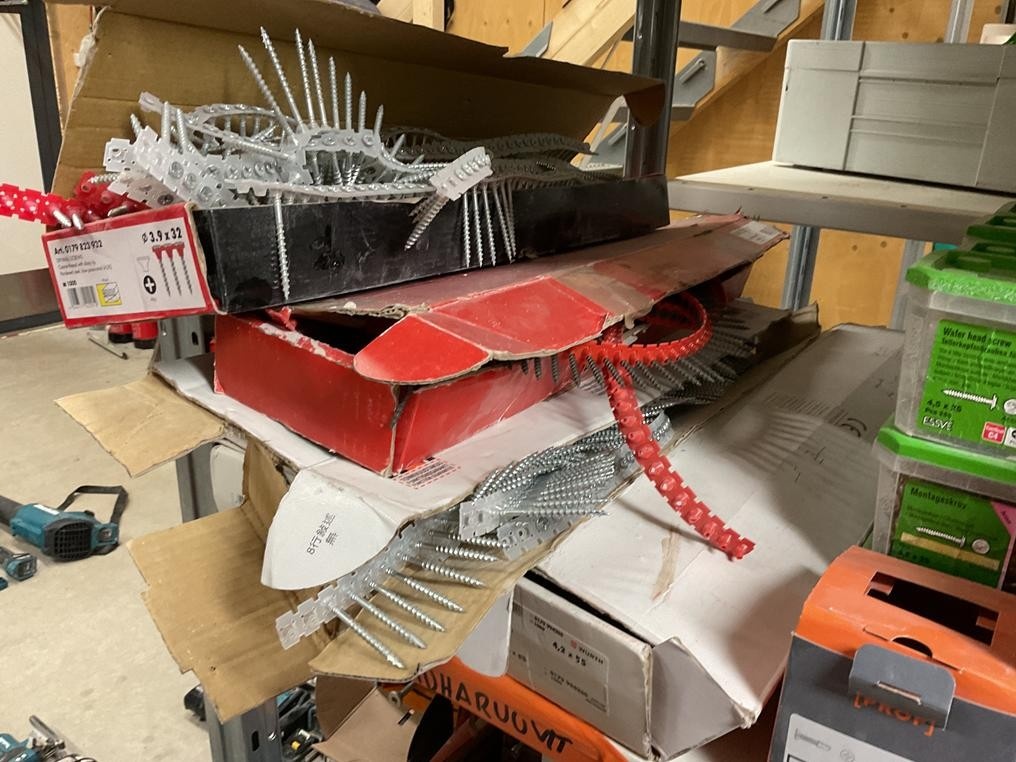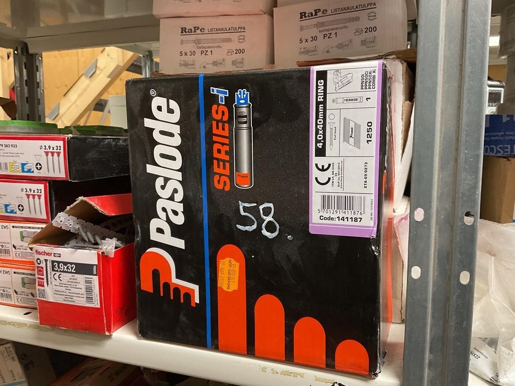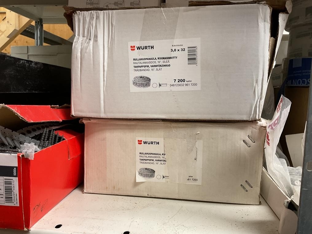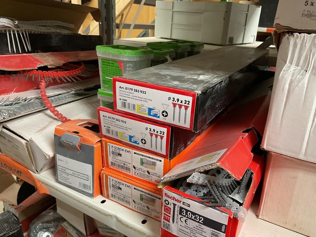 Myyntikohteet » 3. Rakennustyöt Pulkkinen Oy:n konkurssipesä, RAISIO (2912661-9), 28.11.2025 » 58. Hyllytasolla olevat kiinnitystarvikkeet