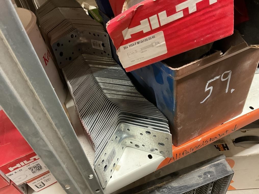 Myyntikohteet » 3. Rakennustyöt Pulkkinen Oy:n konkurssipesä, RAISIO (2912661-9), 28.11.2025 » 59. Hyllytasolla olevat kulmakiinnikkeet ym.