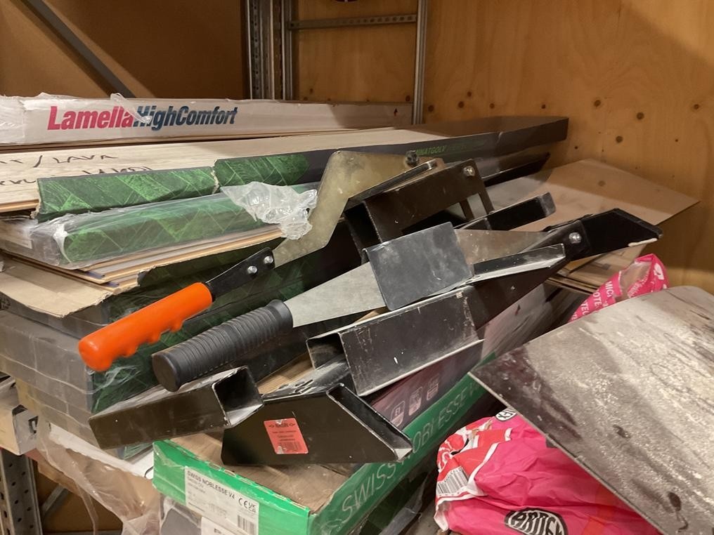 Myyntikohteet » 4. Rakennustyöt Pulkkinen Oy:n konkurssipesä, RAISIO (2912661-9), 29.11.2025 » 92. Työmailta jääneet sekalaiset laminaatit + laminaattileikkurit 4 kappaletta