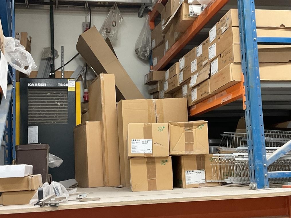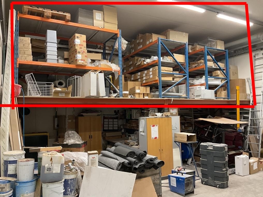 Myyntikohteet » 1. Okmatek Tmi:n konkurssipesä, LOIMAA (1318099-5), 28.11.2025 » 21. Puusepänliikkeen yläkerrän hyllyvarasto, joka on toiminut tuotantotarvikkeiden säilytyspisteenä