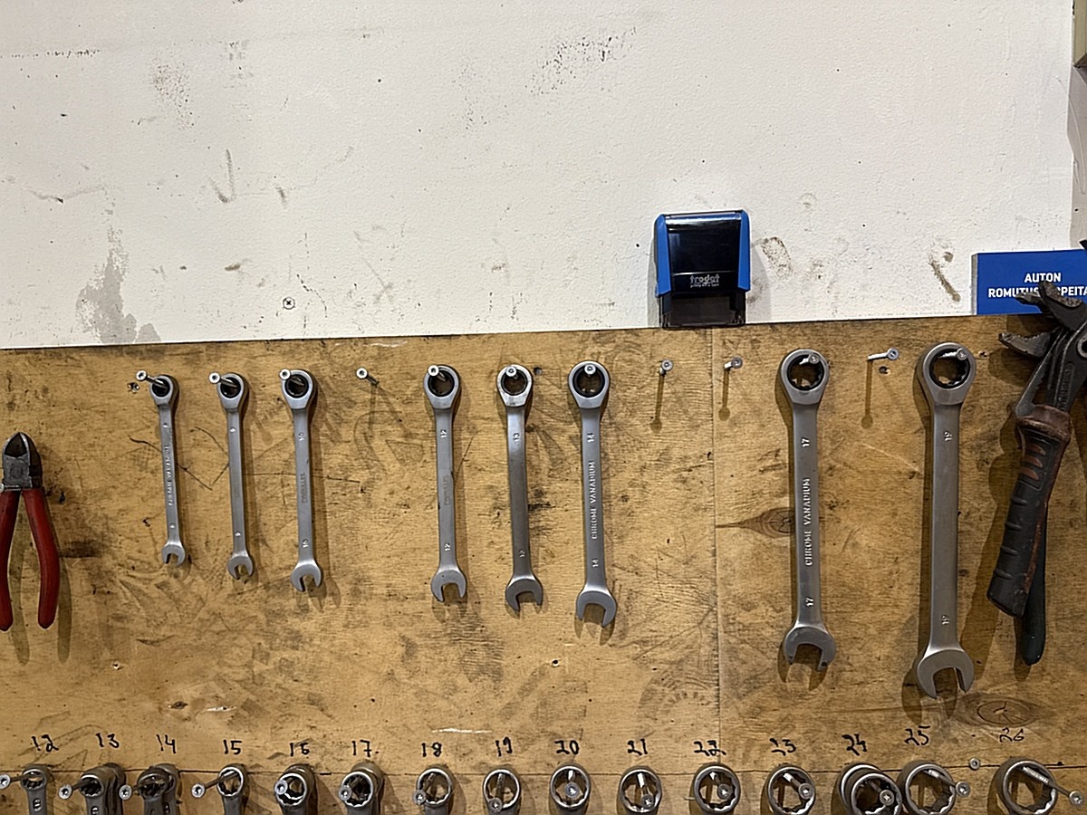 Myyntikohteet » 3. T:mi Vesa Arrenius konkurssipesä (2137311-3), KUHMOINEN, 01.12.2025 » 24. Työpöydän ja hyllyn työkalut ja tarvikkeet
