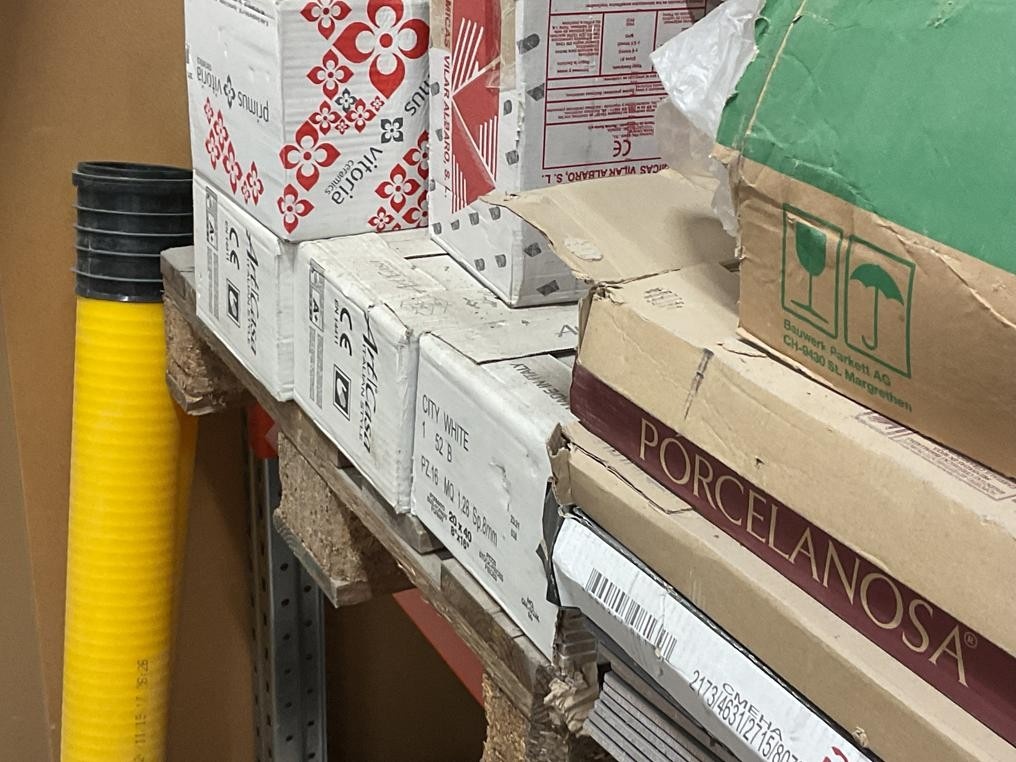 Myyntikohteet » 5. Rakennustyöt Pulkkinen Oy:n konkurssipesä, RAISIO (2912661-9), 02.12.2025 » 103. Hyllytasolla kahdella lavalla olevat työmailta jääneet sekalaiset laatat