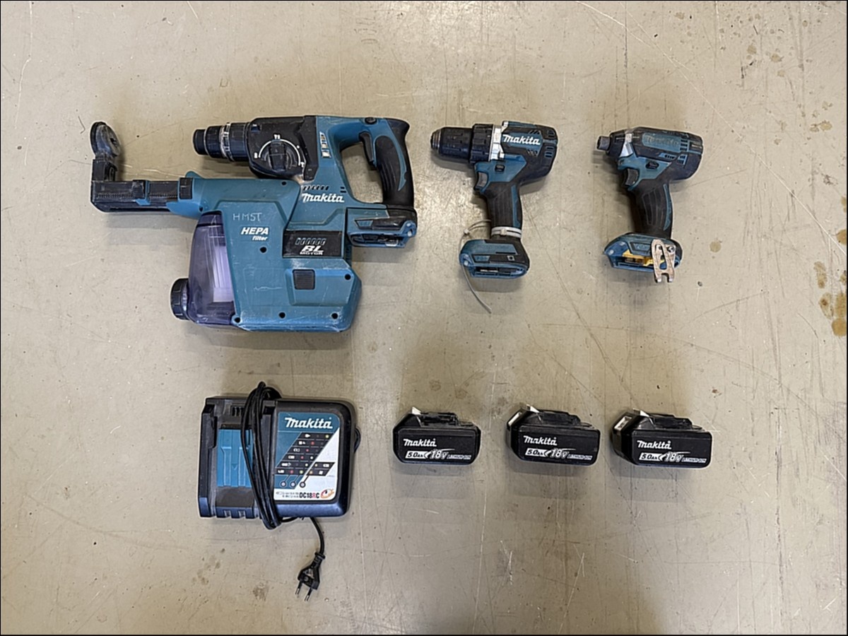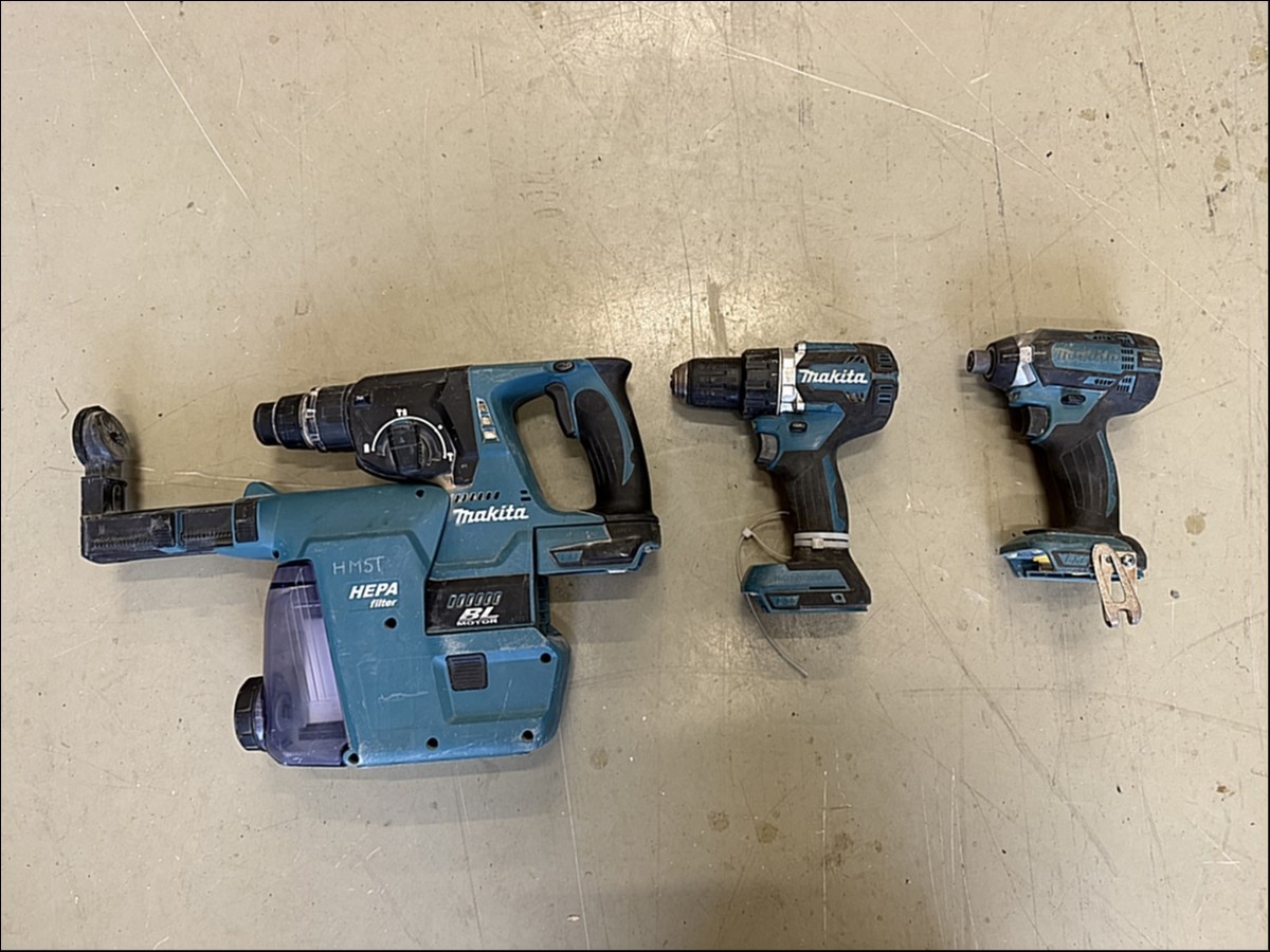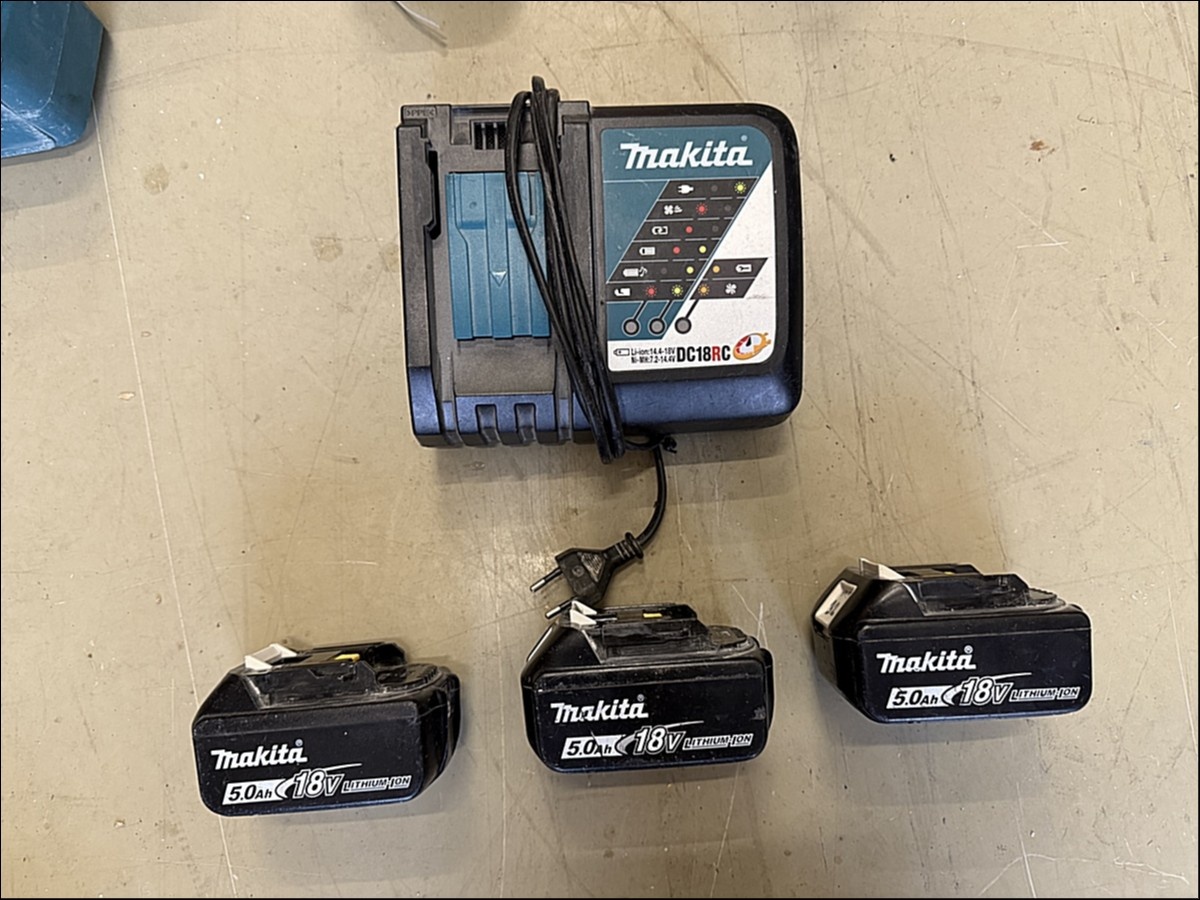 Myyntikohteet » 1. HM-Sähkötekniikka Oy:n konkurssipesä (2844088-4), PIRKKALA, 03.12.2025 » 03. Akkutyökalut Makita ( 3 kappaletta + laturi ja 3 akkua )