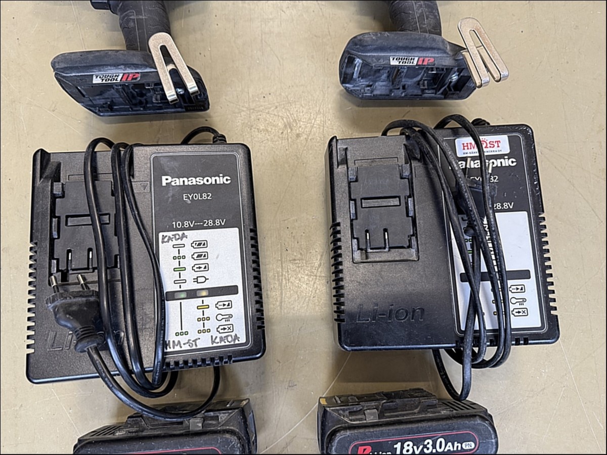 Myyntikohteet » 1. HM-Sähkötekniikka Oy:n konkurssipesä (2844088-4), PIRKKALA, 03.12.2025 » 10. Akkutyökalut Panasonic ( 4 kappaletta + laturit 2 kappaletta ja akut 4 kappaletta )
