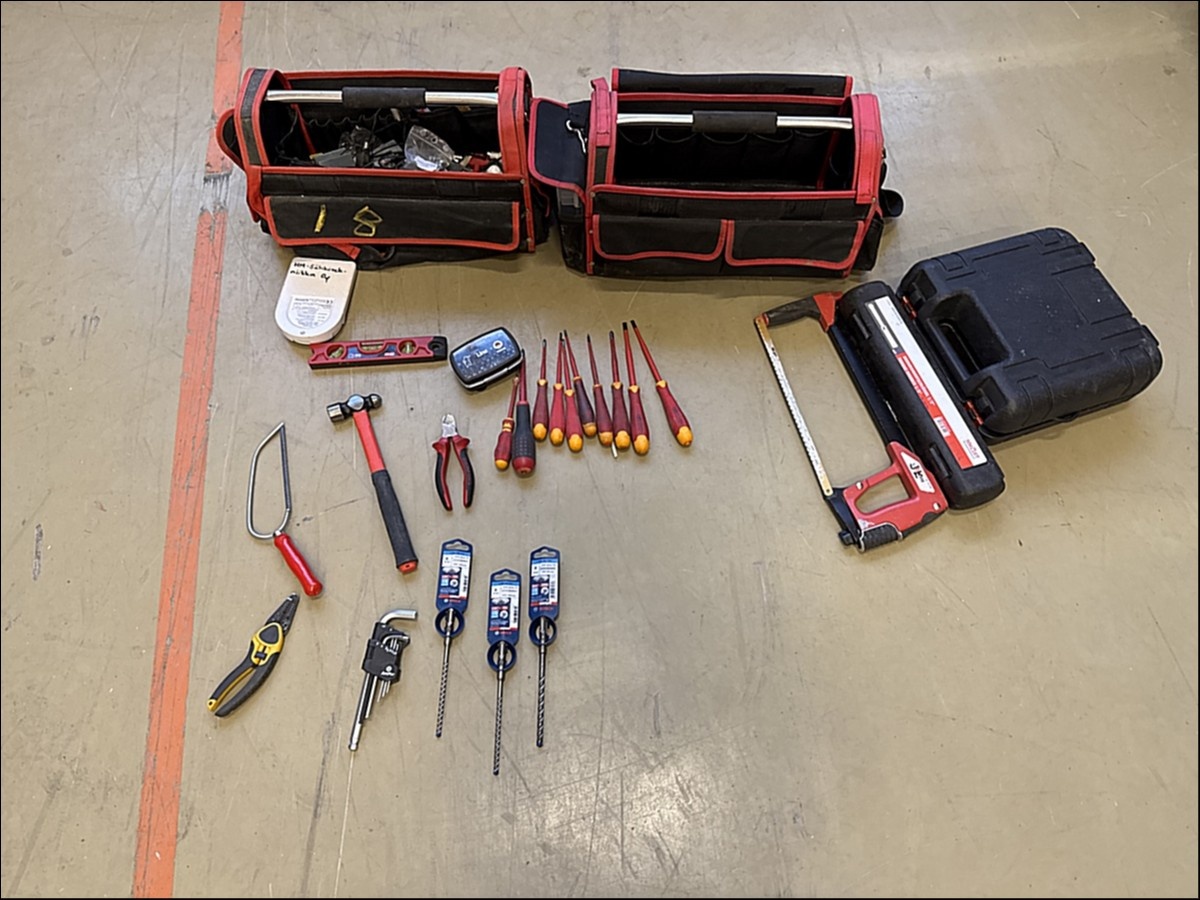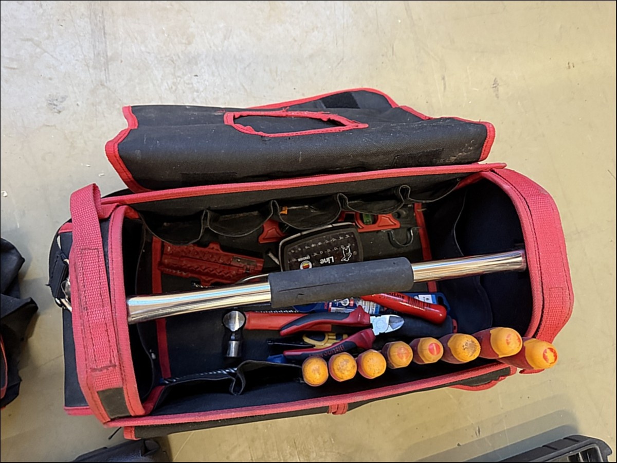 Myyntikohteet » 1. HM-Sähkötekniikka Oy:n konkurssipesä (2844088-4), PIRKKALA, 03.12.2025 » 18. Sähköasentajan työkalulaukku ( 2 kappaletta + työkalut )
