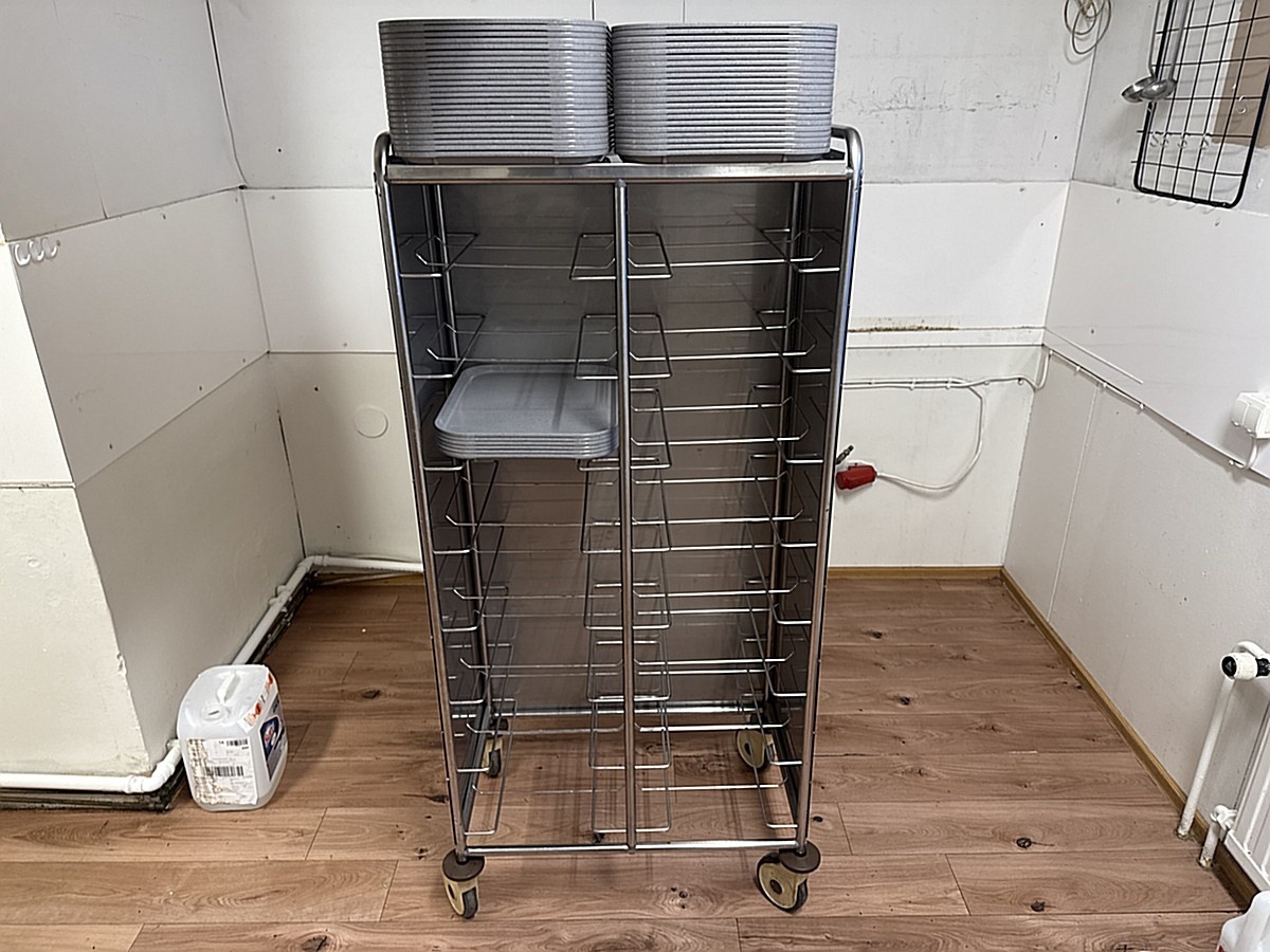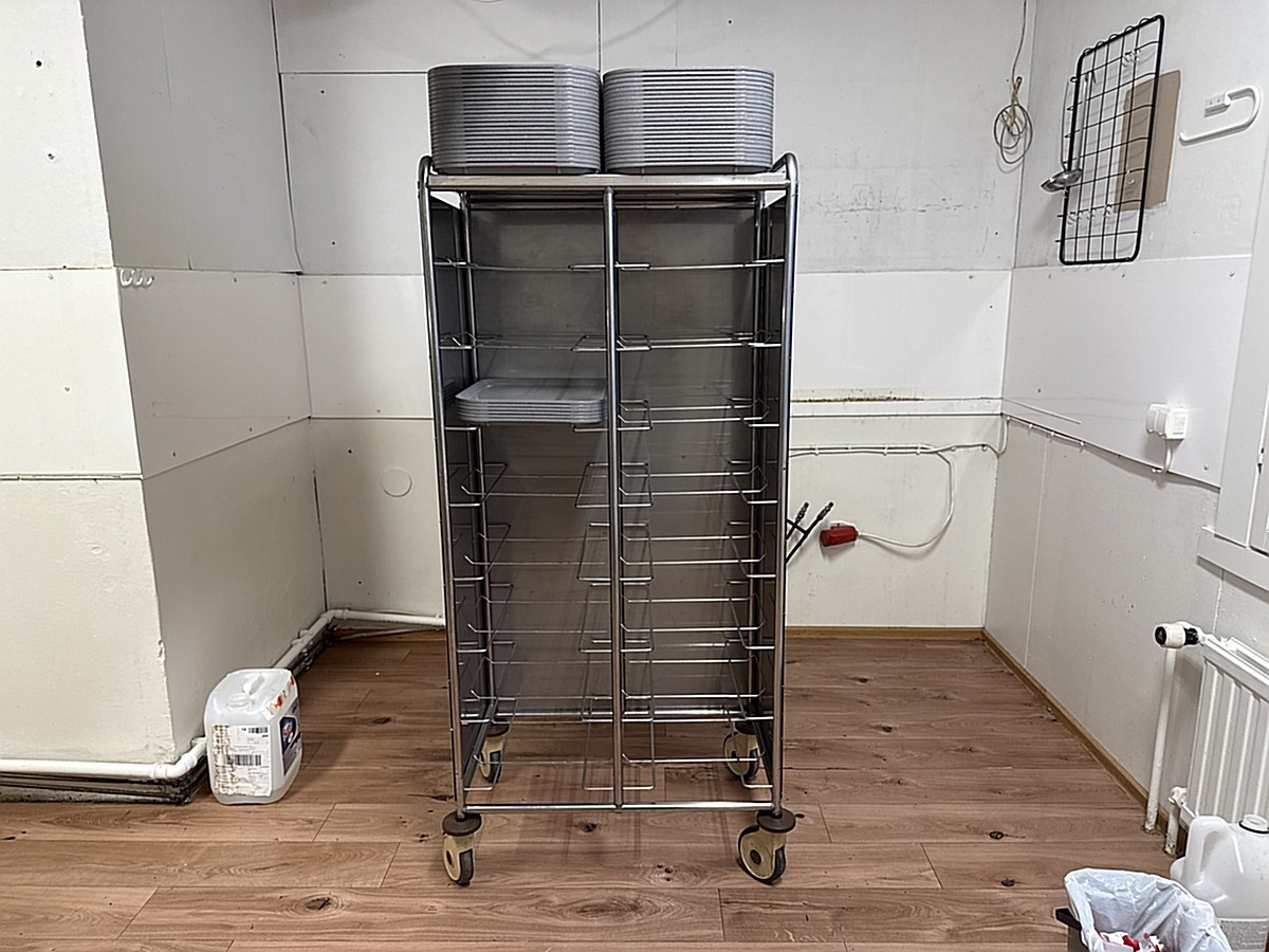 Myyntikohteet » 1. Elintarvikepaja Oy:n konkurssipesä (3446373-2), ISOJOKI, 03.12.2025 » 11. Tarjotinvaunu ja tarjottimet noin (40 kappaletta)