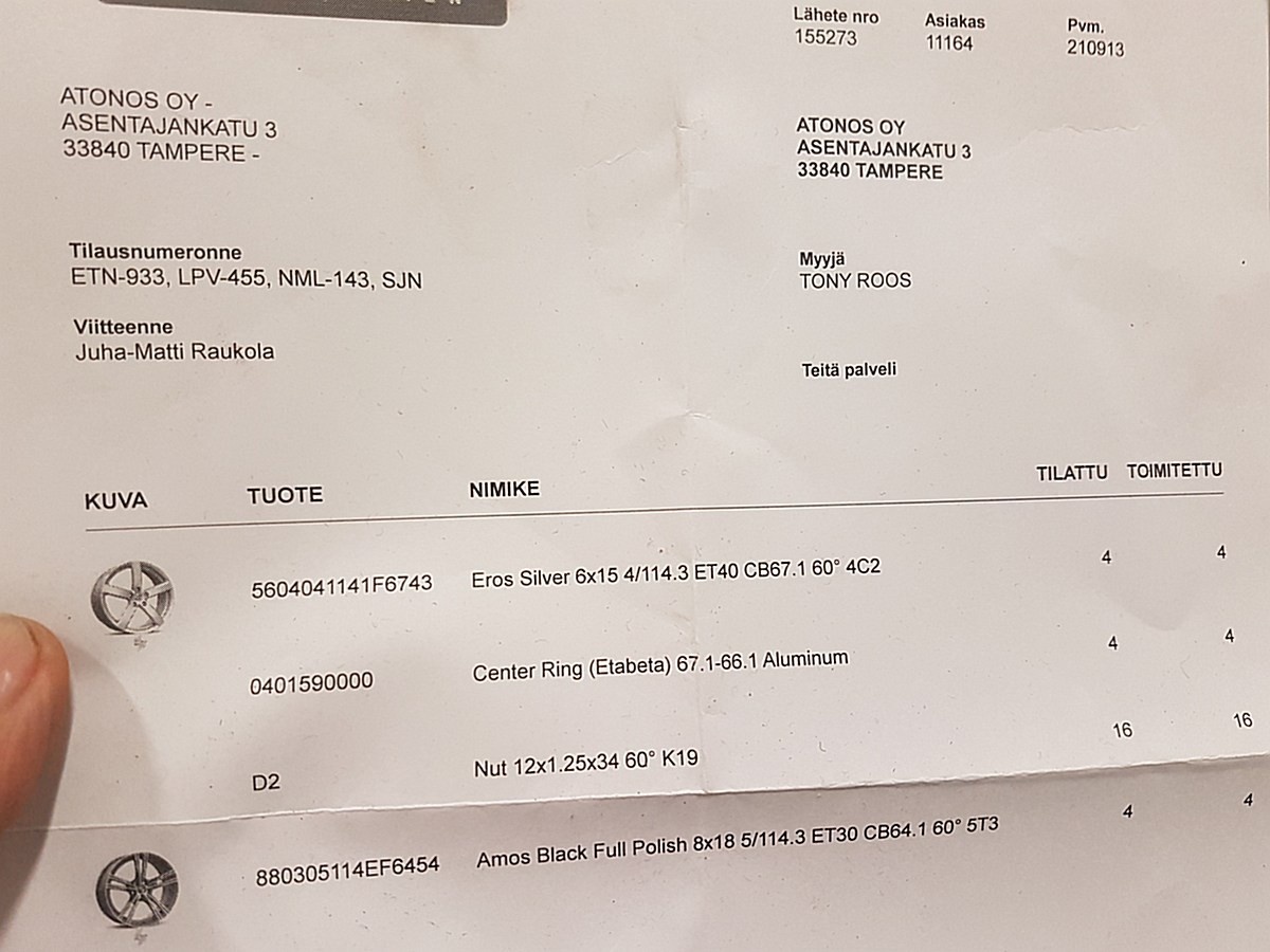 Myyntikohteet » 2. Atonos Oy:n konkurssipesä (2613210-8), LEMPÄÄLÄ, 03.12.2025 » 38. Alumiinivannesarja EtaBeta Eros Silver 4x114.3 15