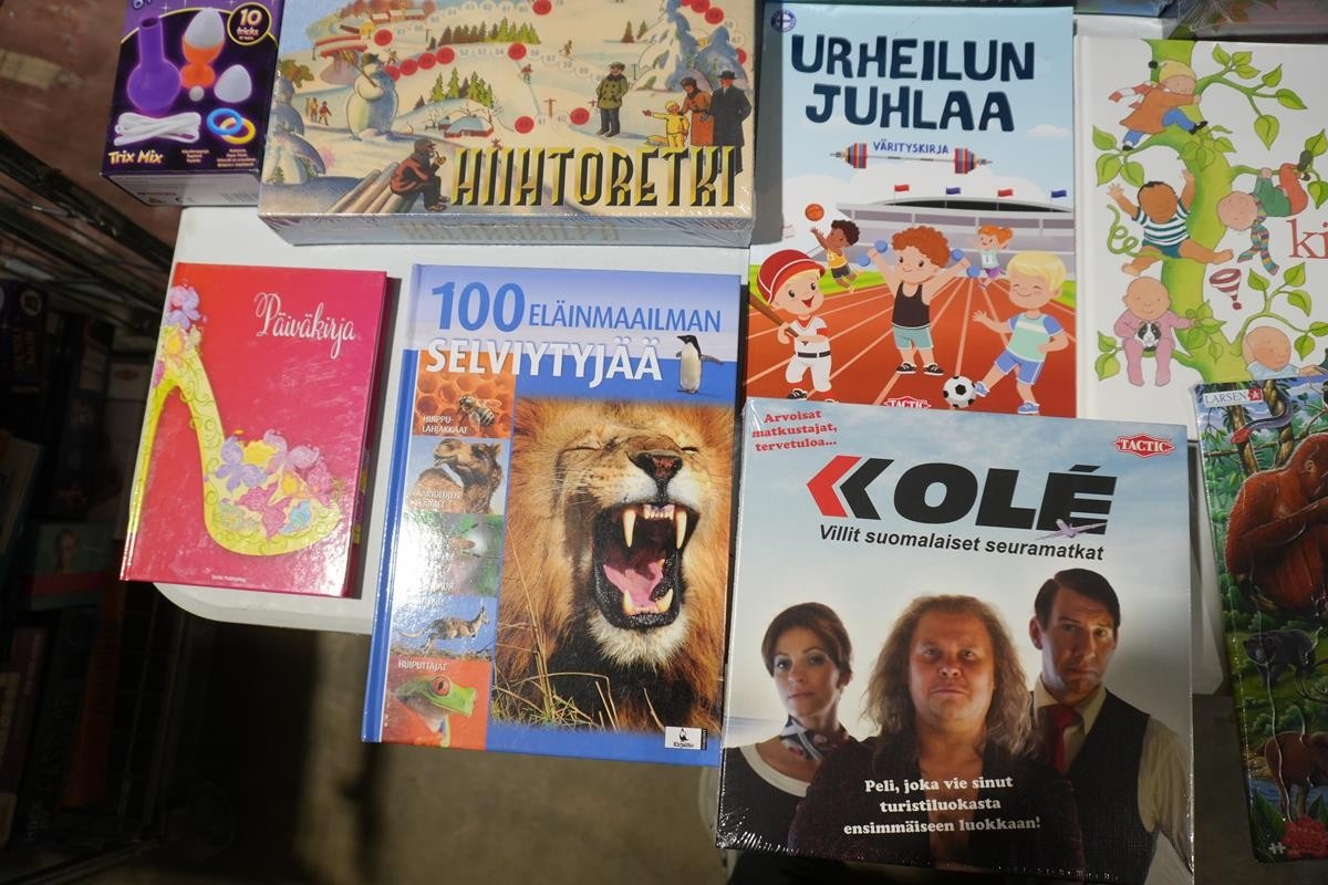Myyntikohteet » 2. Itä-Lapin Raivaus-ja Siivouspalvelu Oy:n konkurssipesä, KEMIJÄRVI (3133783-7) NOUTO OULU, 04.12.2025 » 14. Erilaiset kirjat, lautapelit