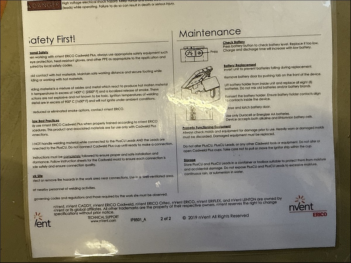 Myyntikohteet » 2. HM-Sähkötekniikka Oy:n konkurssipesä (2844088-4), PIRKKALA, 05.12.2025 » 21. Eksoterminen hitsauslaite Erico nvent CadWeld