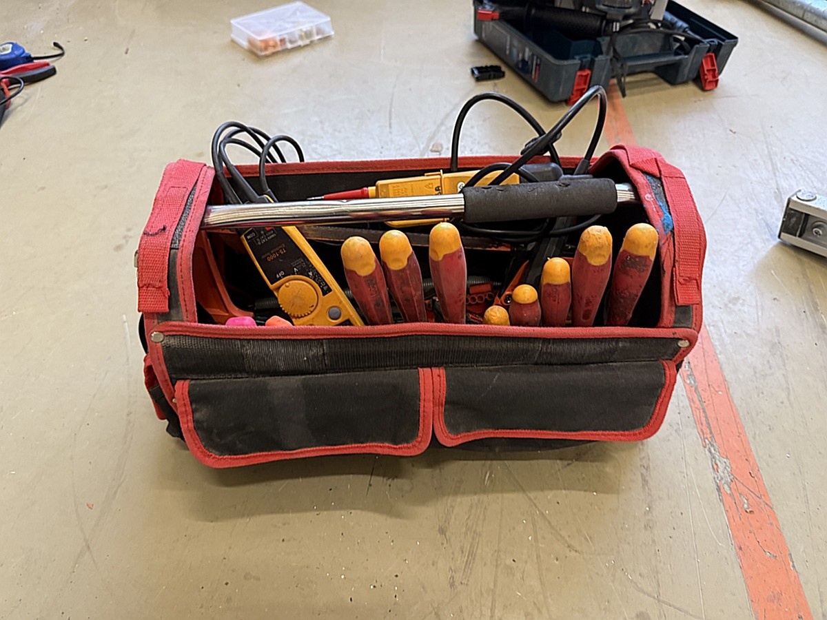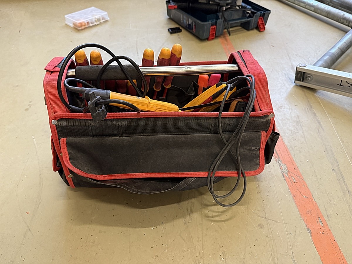 Myyntikohteet » 2. HM-Sähkötekniikka Oy:n konkurssipesä (2844088-4), PIRKKALA, 05.12.2025 » 38. (85) Sähköasentajan työkalulaukku työkaluineen + Fluke jännitetesteri