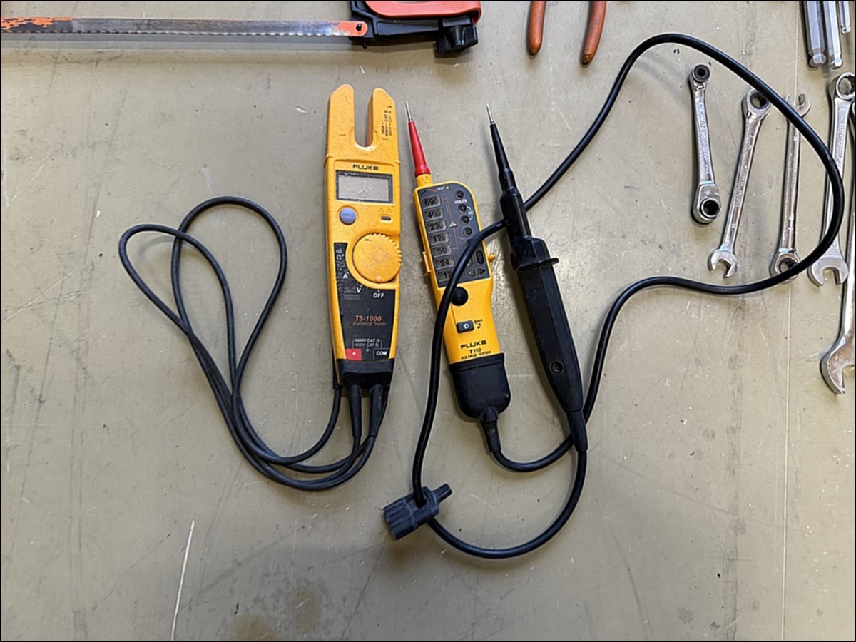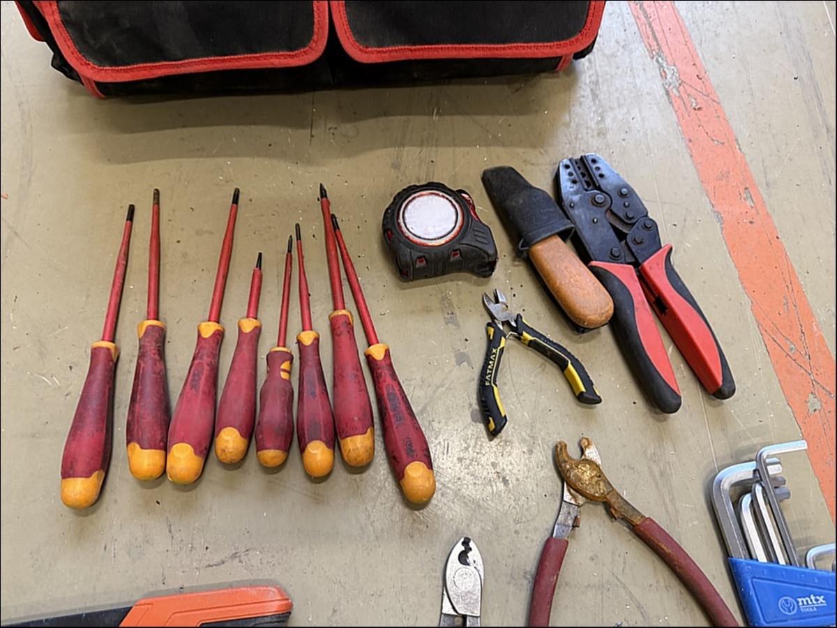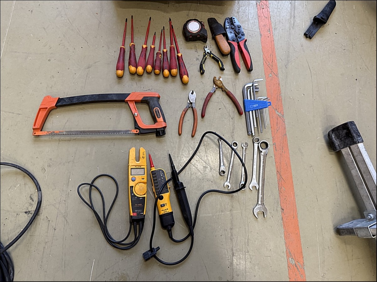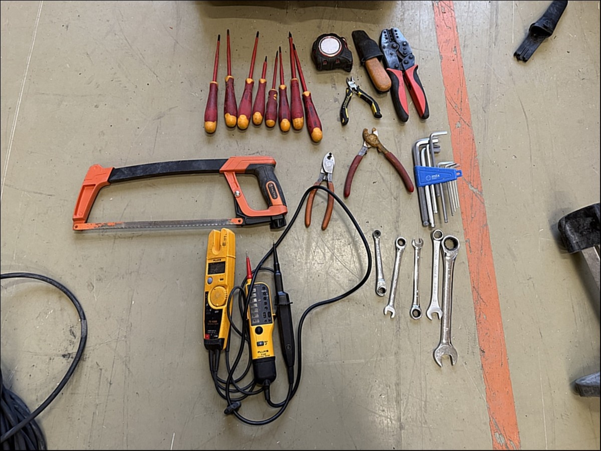 Sähköasentajan työkalulaukku työkaluineen + Fluke jännitetesteri