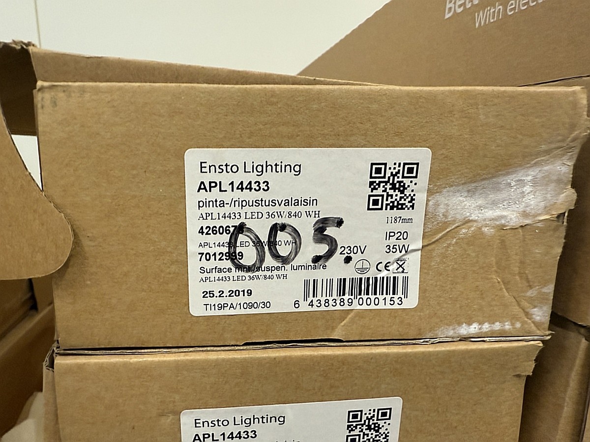 Myyntikohteet » 2. HM-Sähkötekniikka Oy:n konkurssipesä (2844088-4), PIRKKALA, 05.12.2025 » 40. Pinta-/ripustusvalaisin, Ensto APL14433 LED 36W/840 WH.