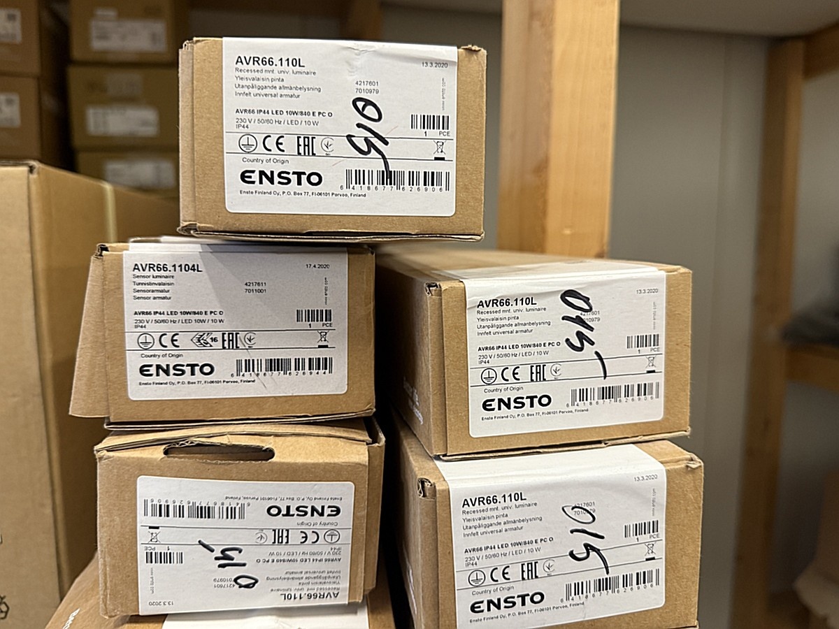 Myyntikohteet » 3. HM-Sähkötekniikka Oy:n konkurssipesä (2844088-4), PIRKKALA, 05.12.2025 » 43. LED-yleisvalaisin Ensto Jono AVR66 IP44 600 mm 10W/840 ( 8 kappaletta ) + 1 LED-tunnistinvalaisin Ensto Jono