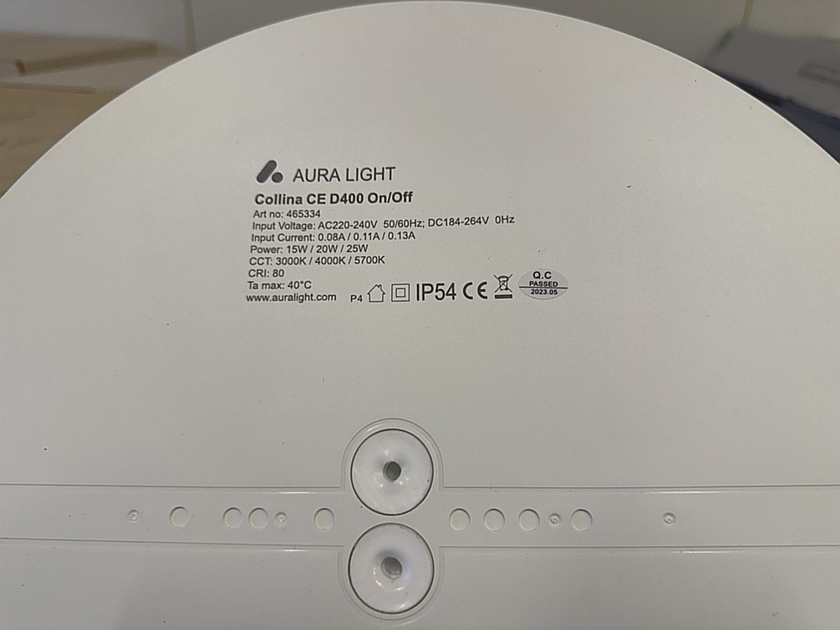 Myyntikohteet » 3. HM-Sähkötekniikka Oy:n konkurssipesä (2844088-4), PIRKKALA, 05.12.2025 » 49. Kattovalaisin Aura Light Collina CE D400 On/Off ( 5 kappaletta )