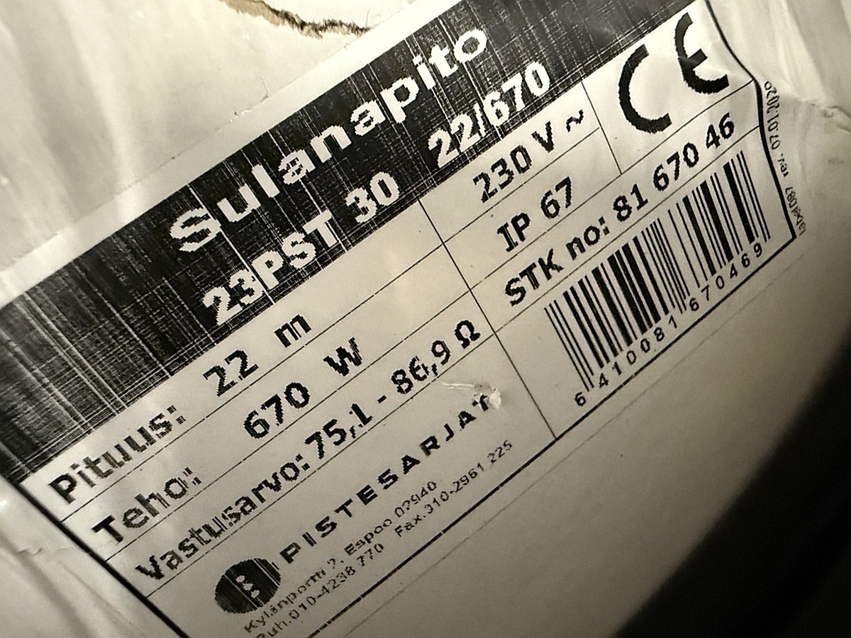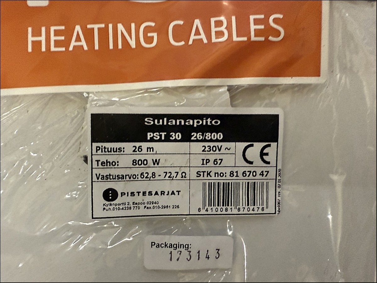 Myyntikohteet » 3. HM-Sähkötekniikka Oy:n konkurssipesä (2844088-4), PIRKKALA, 05.12.2025 » 54. Sulanapitokaapelit ( 7 kappaletta )