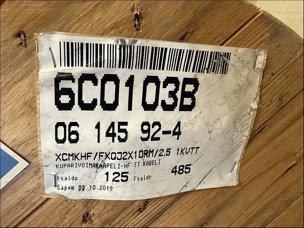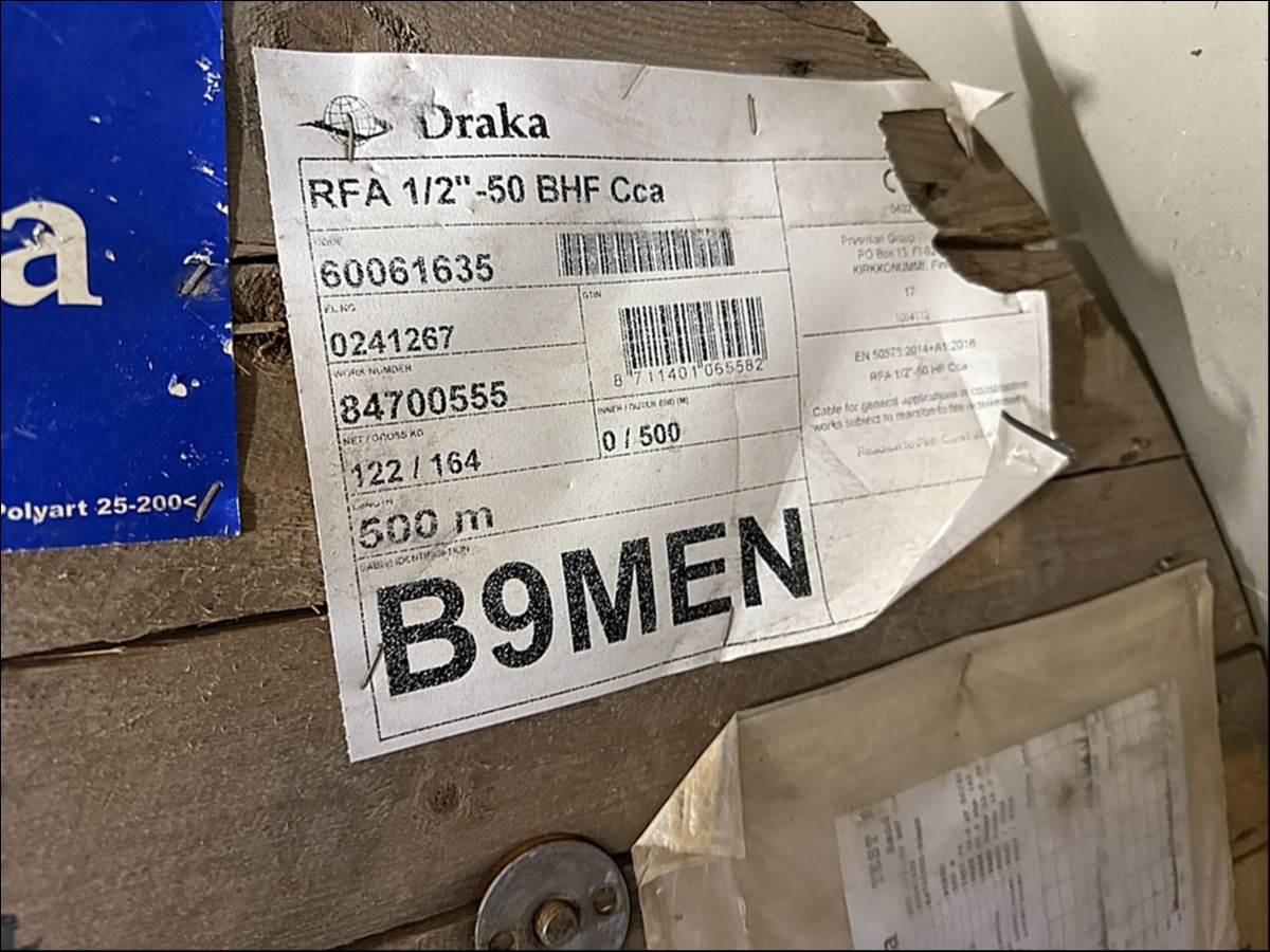 Myyntikohteet » 4. HM-Sähkötekniikka Oy:n konkurssipesä (2844088-4), PIRKKALA, 05.12.2025 » 61. Kaapelit (10 kelaa)