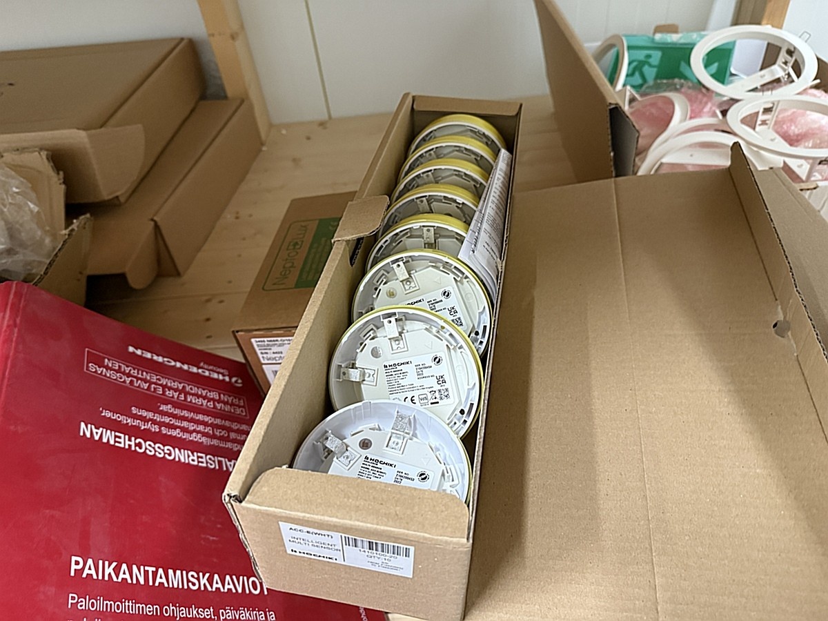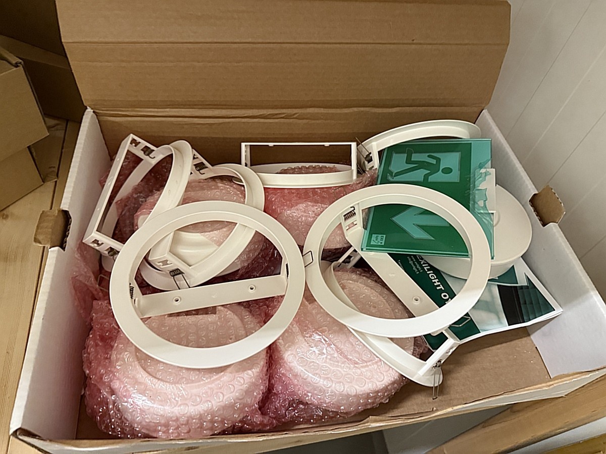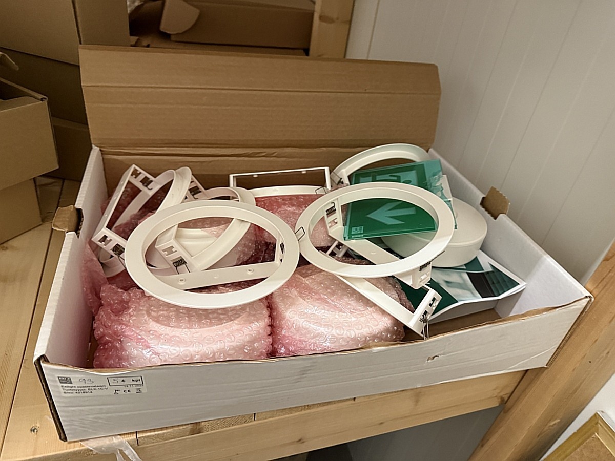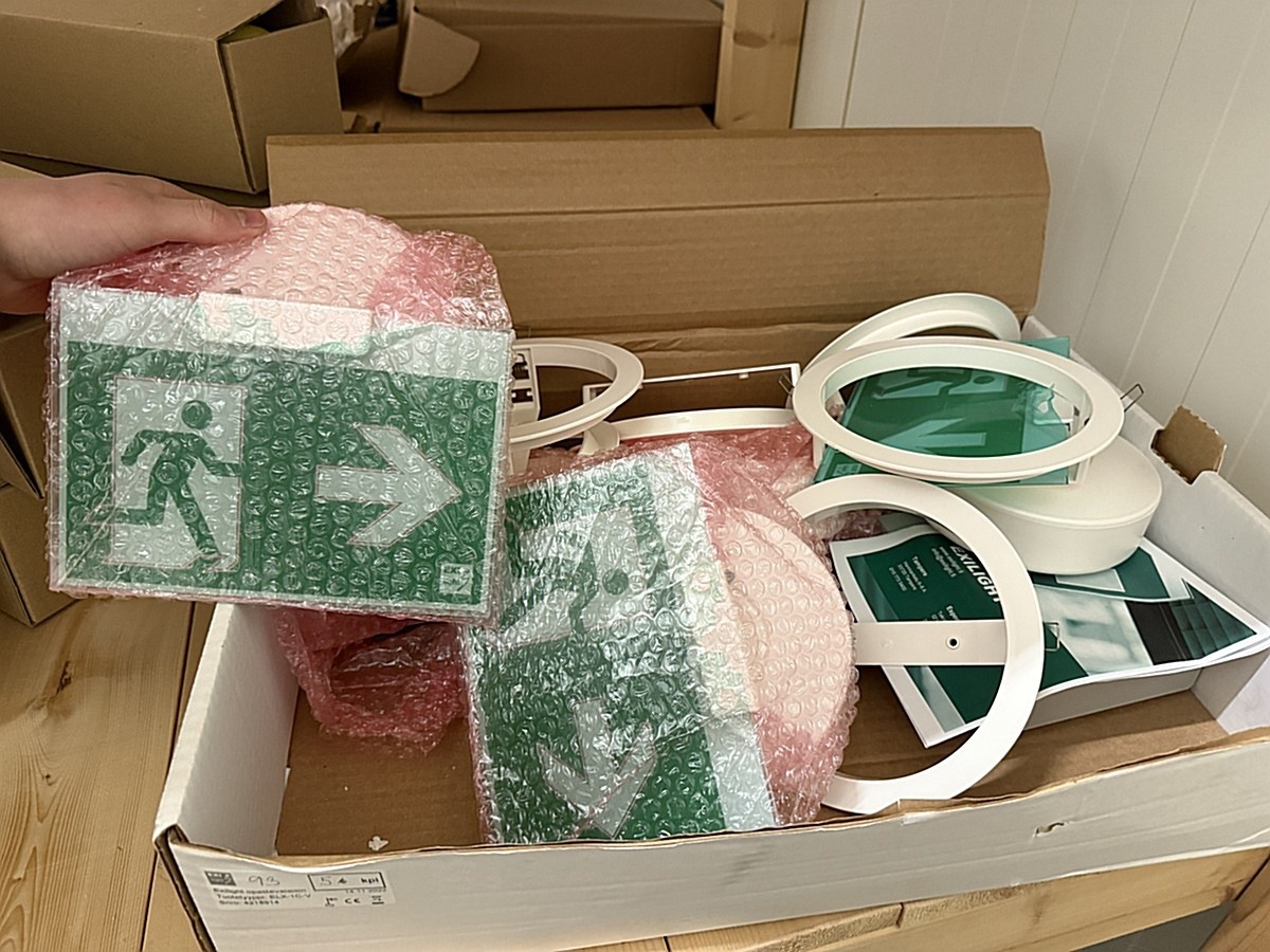 Myyntikohteet » 4. HM-Sähkötekniikka Oy:n konkurssipesä (2844088-4), PIRKKALA, 05.12.2025 » 64. Paloturvatuotteet, opastevalot ym (2 hyllytasoa)