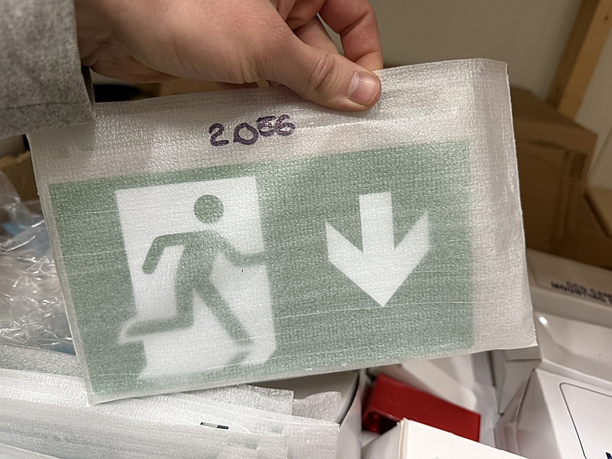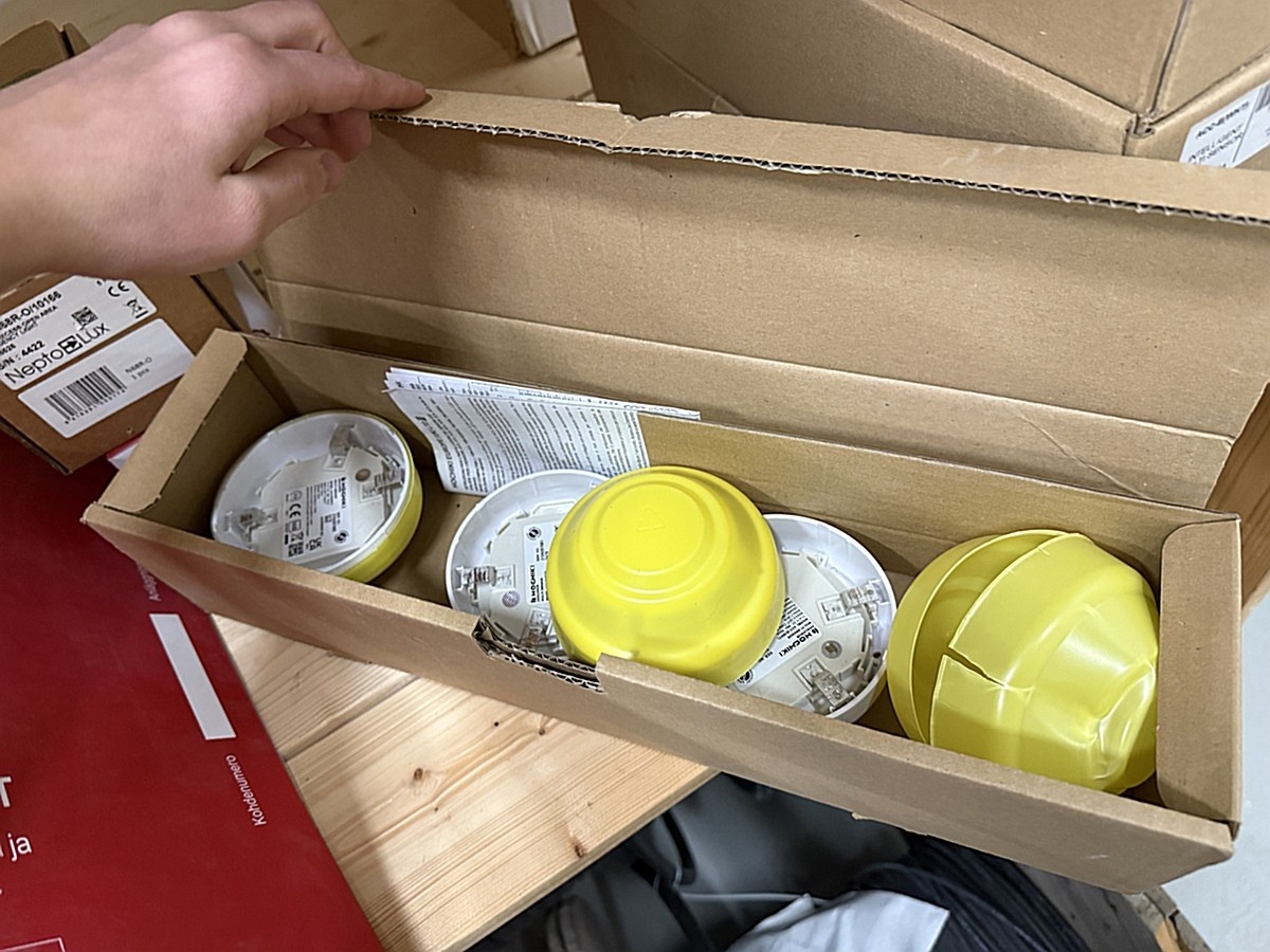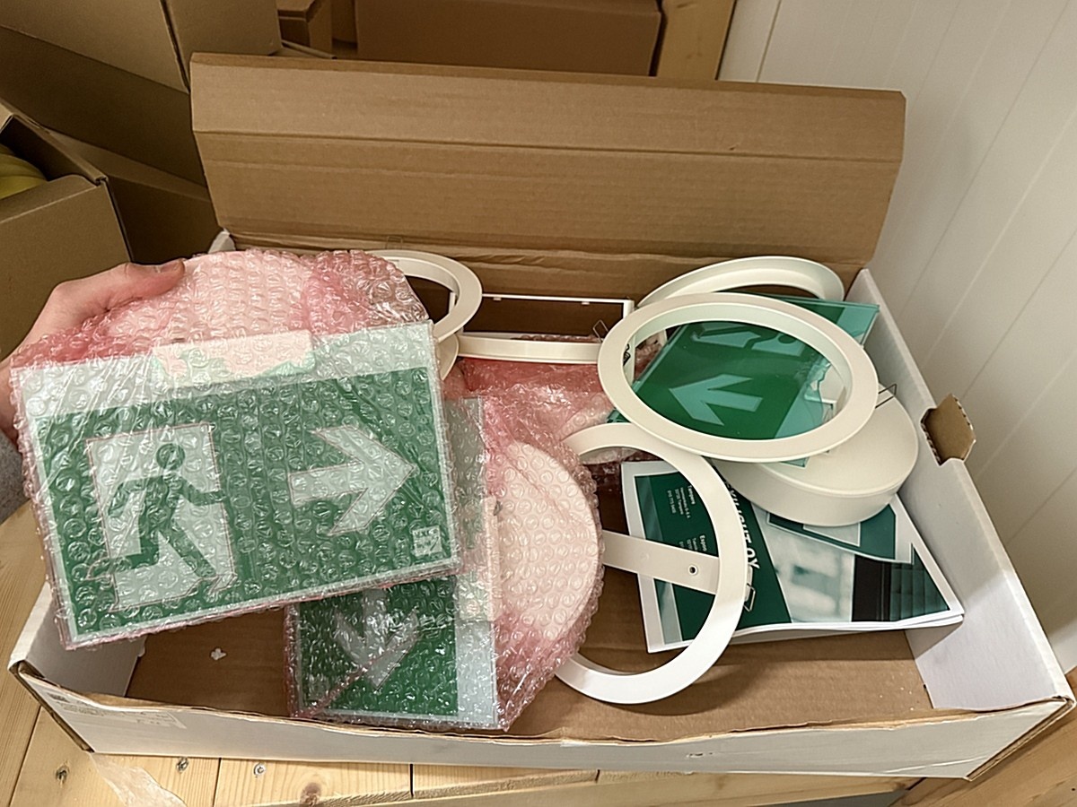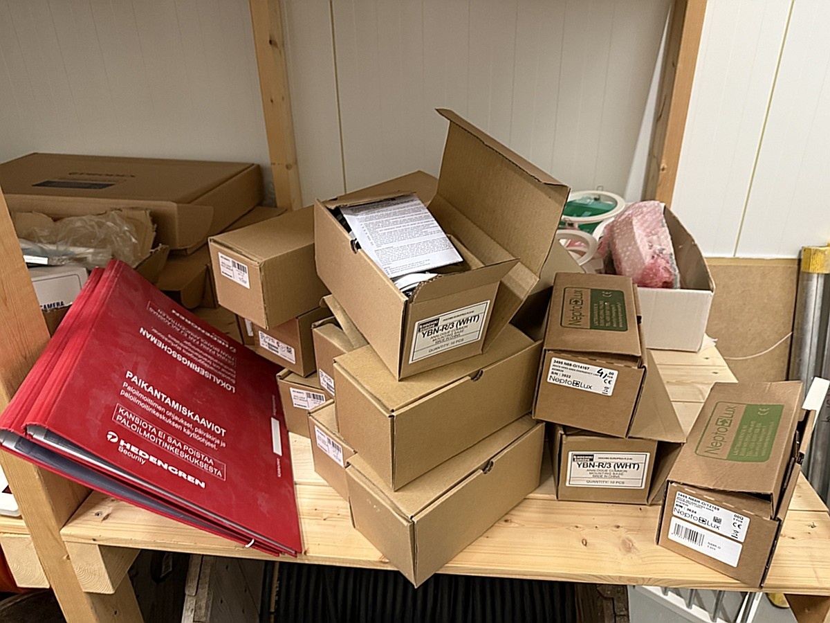 Myyntikohteet » 4. HM-Sähkötekniikka Oy:n konkurssipesä (2844088-4), PIRKKALA, 05.12.2025 » 64. Paloturvatuotteet, opastevalot ym (2 hyllytasoa)