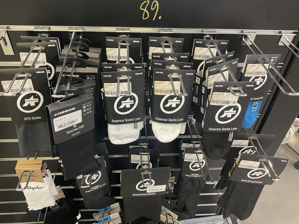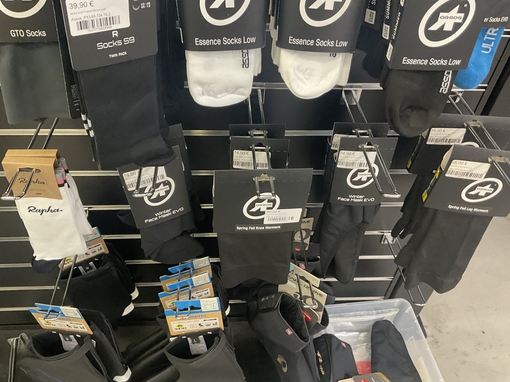 Myyntikohteet » 14. Seven Bikes Oy:n konkurssipesä, TAMPERE (3215327-1), 07.12.2025 » 089. Sukat ja kenkäsuojat tuoteseinässä, n. 30 tuotetta