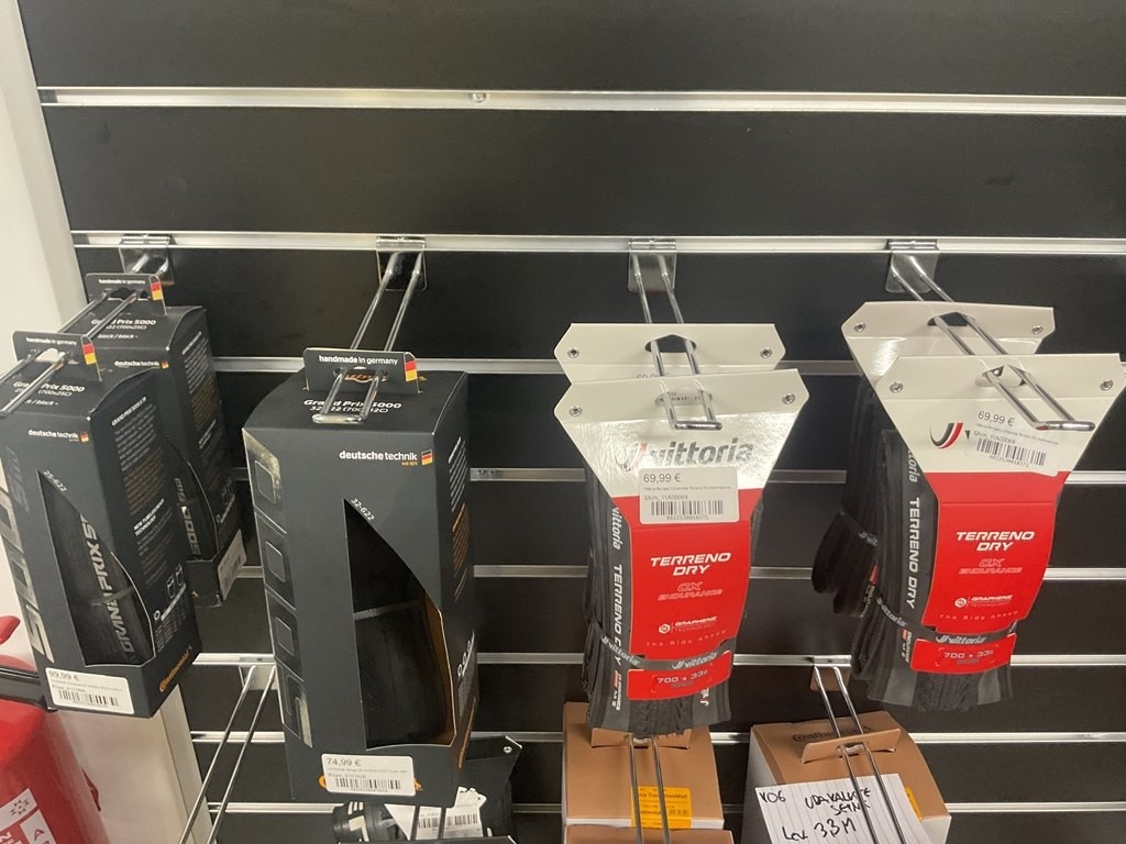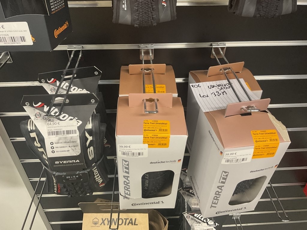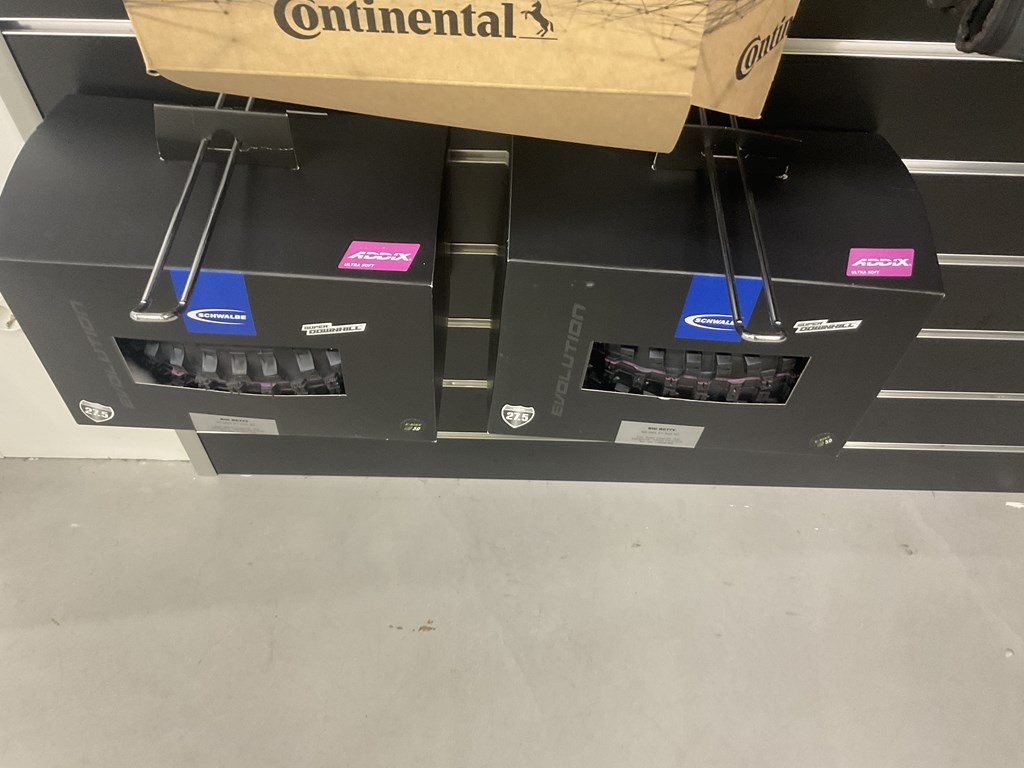 Myyntikohteet » 15. Seven Bikes Oy:n konkurssipesä, TAMPERE (3215327-1), 06.12.2025 » 140. Polkupyörön renkaat tuoteseinässä, yhteensä 19 tuotetta