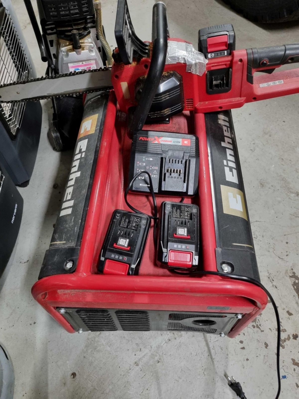 Myyntikohteet » 1. K. Paukkonen kuolinpesä, JOENSUU, 11.12.2025 » 08. Akkuketjusaha Einhell GE-LC 36/35Li, akkukulmahiomakone Einhell AXXIO 125 mm, monitoimitikkaat Brucke ML-103C