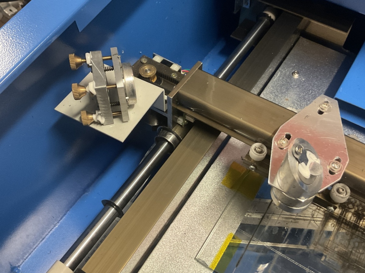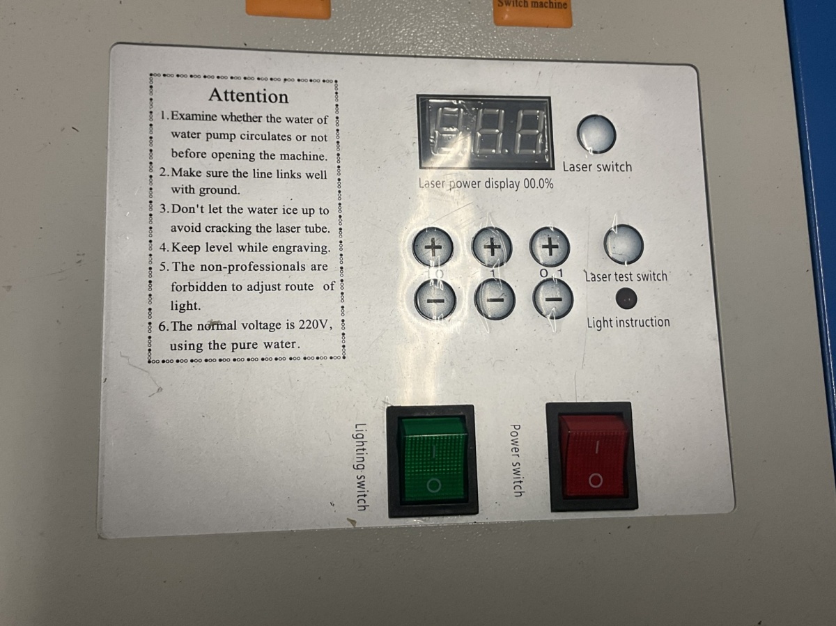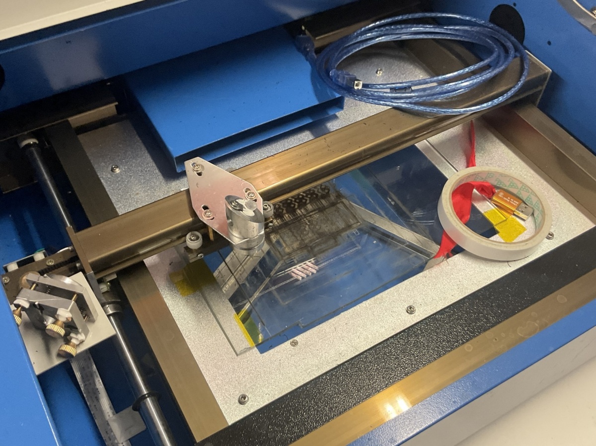 K40-luokan CO₂-laserleikkuri / laserkaiverrin n. 40 W CO₂ -laser, (käytetään mm. akryylin, puun, kartongin, kankaan ja joidenkin muovien leikkaamiseen ja kaivertamiseen.)