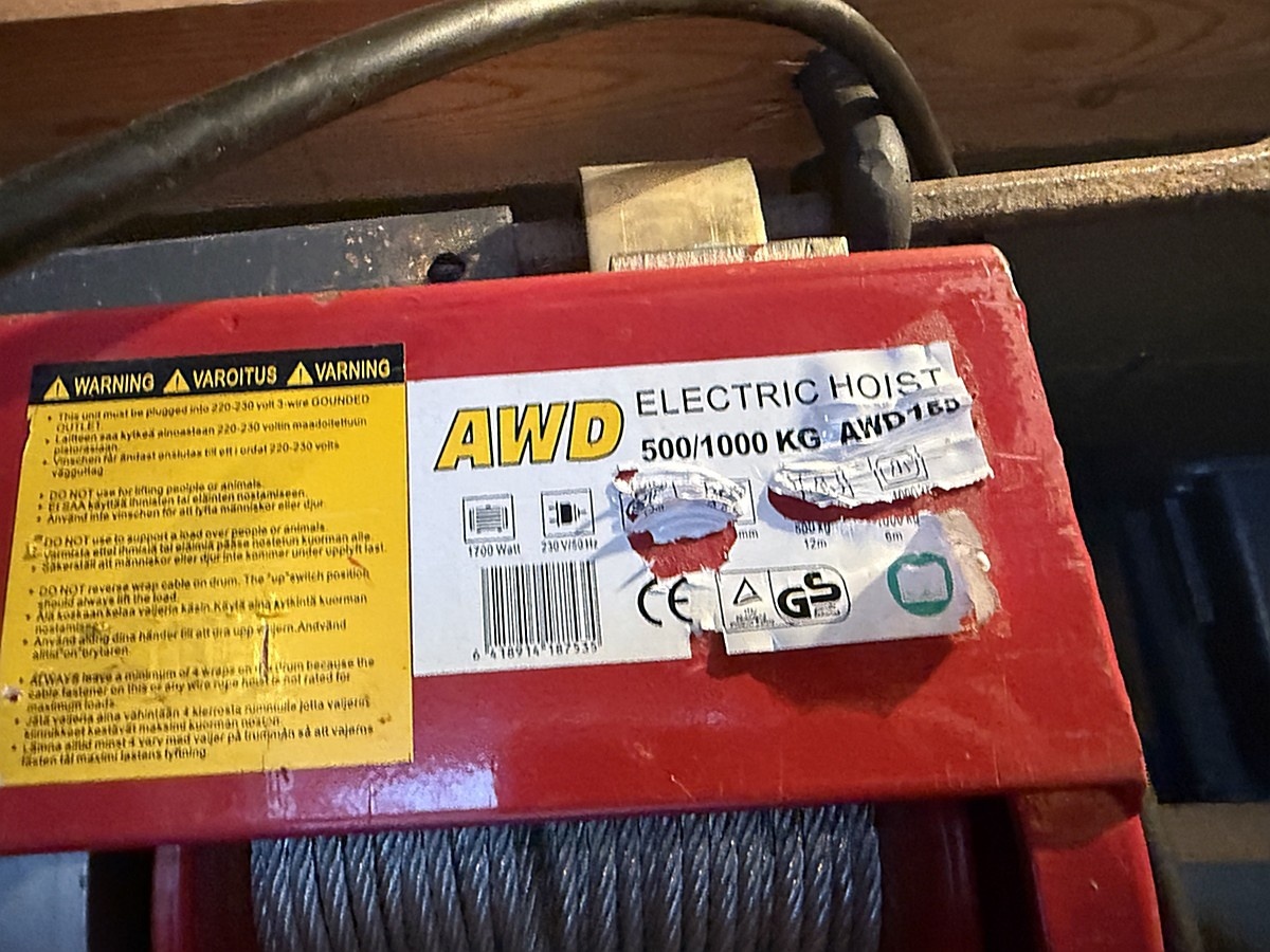 Myyntikohteet » 1. Kuolinpesä myy, JYVÄSKYLÄ, 19.12.2025 » 12. Sähkötalja AWD 500/1000 KG