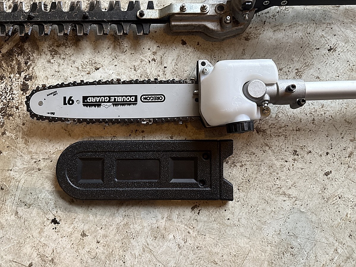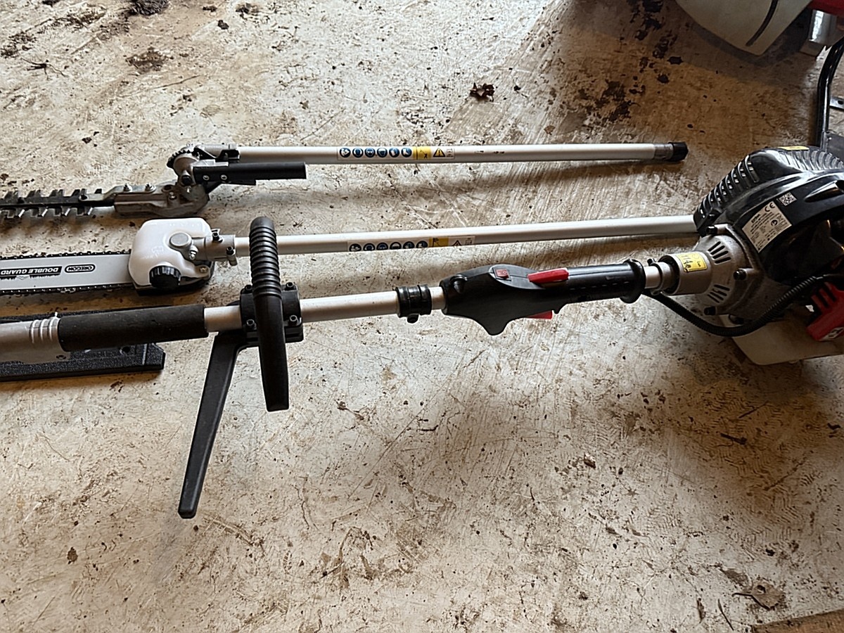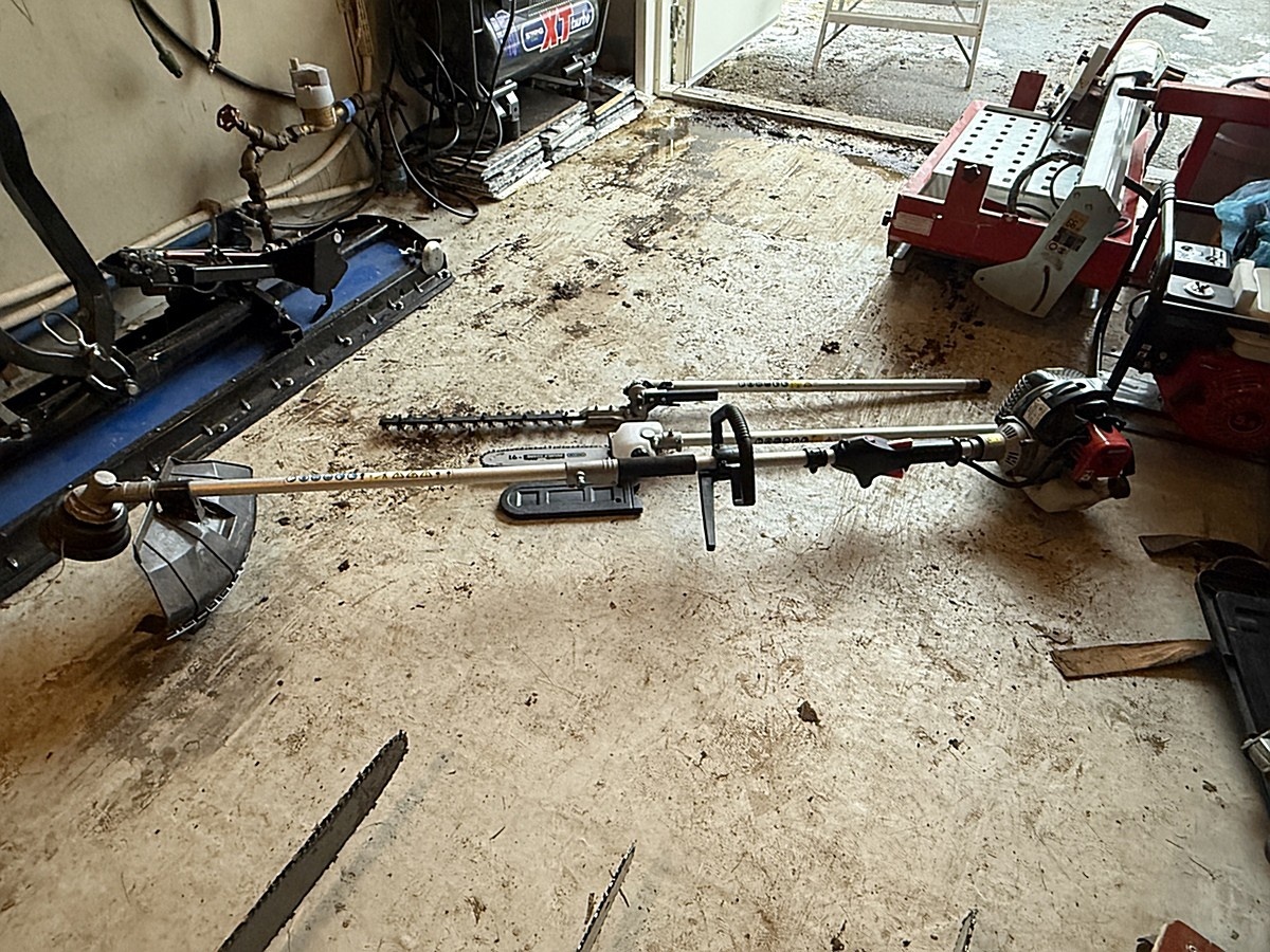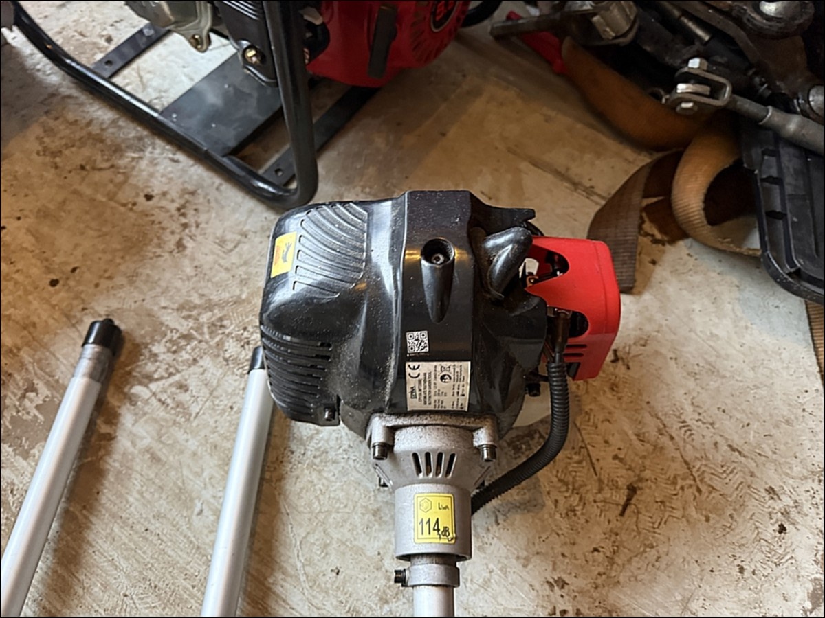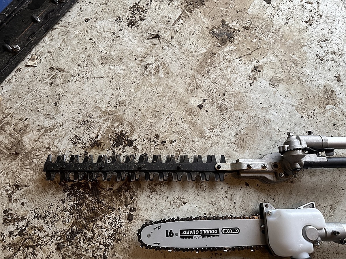 Ruohotrimmeri, raivaussaha ja varsisaha.