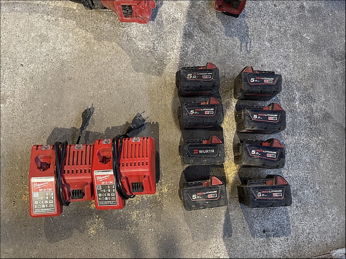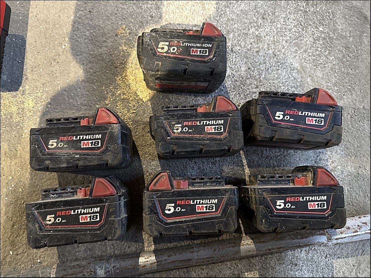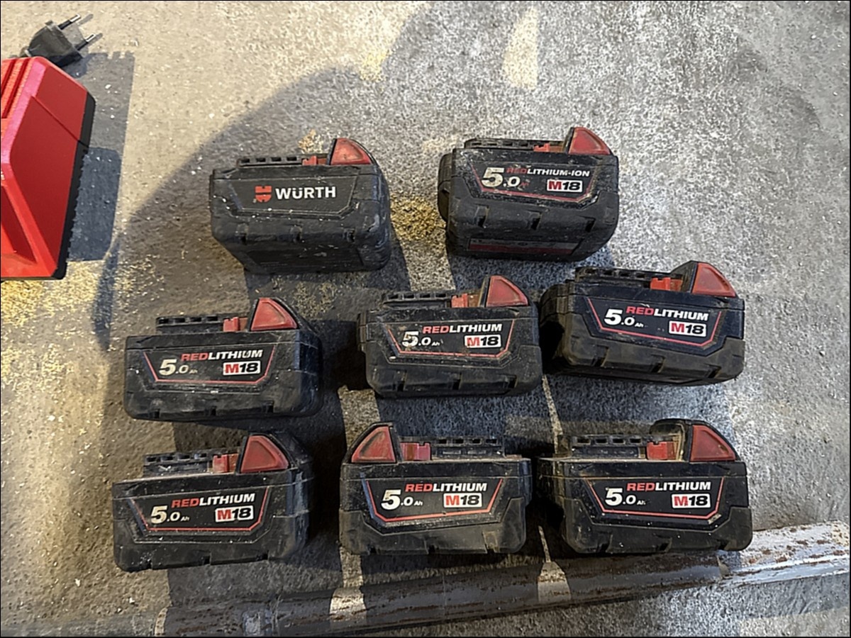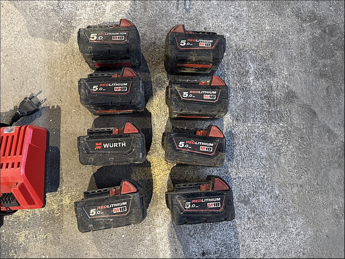 Myyntikohteet » 2. Suomen Laituritukku Oy:n konkurssipesä (2777666-9), SASTAMALA, 19.12.2025 » 15. Akkutyökalut Milwaukee (7 kappaletta, laturi + 8 akkua)