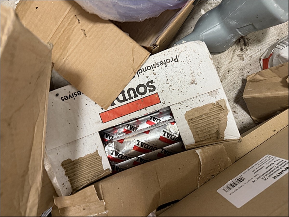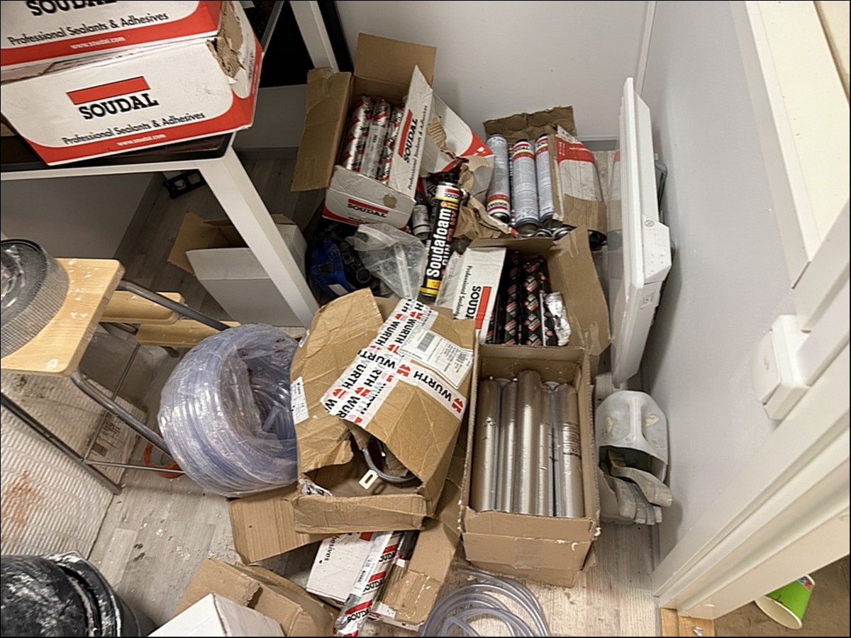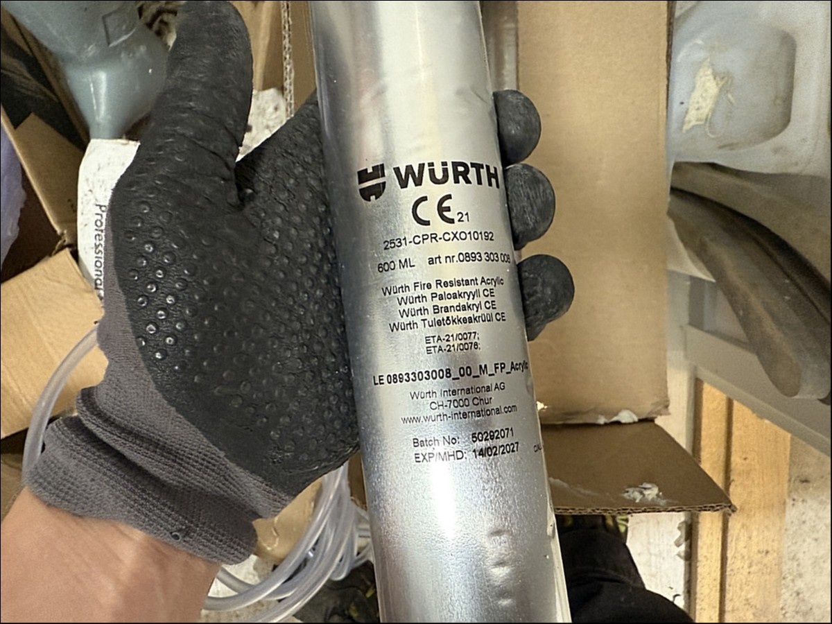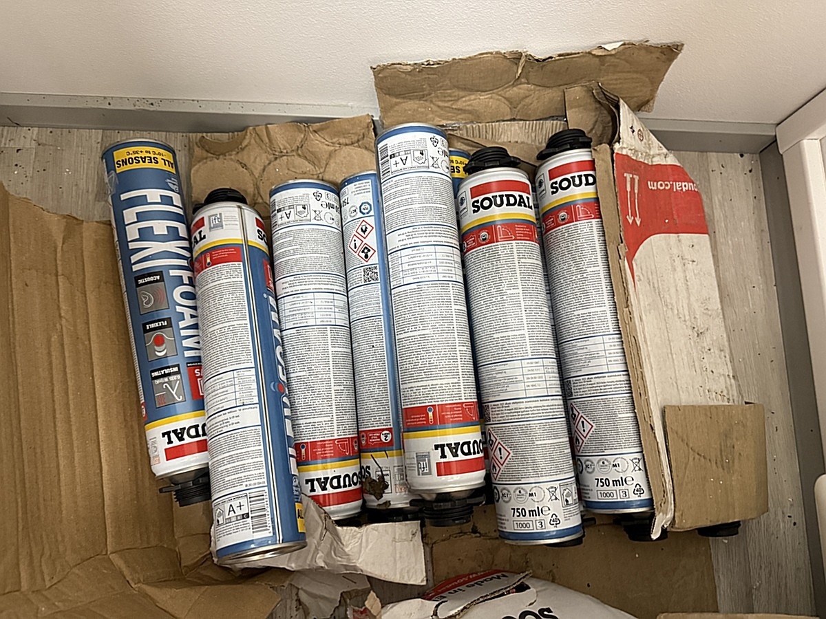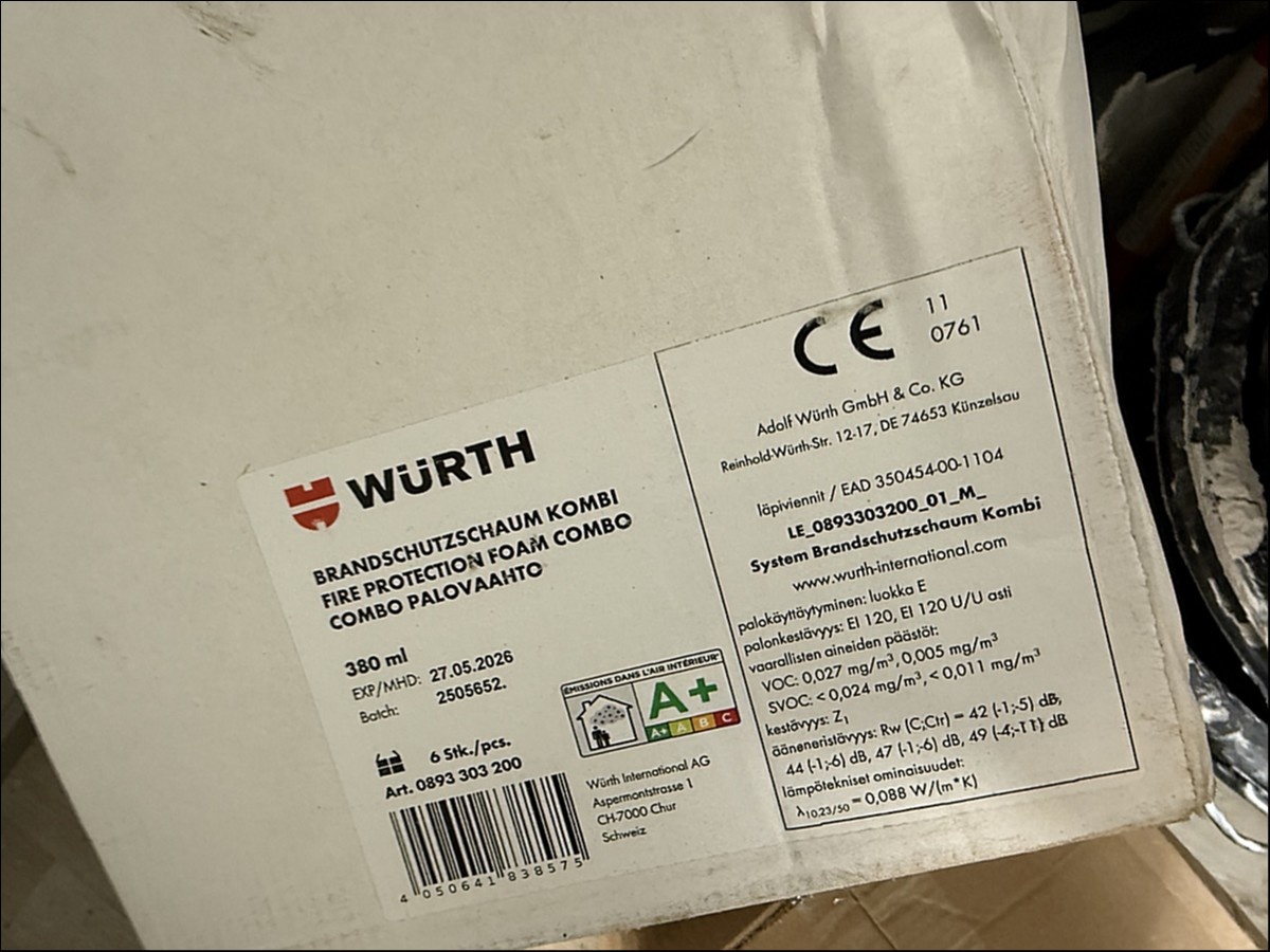 Myyntikohteet » 1. Paloman Group Oy:n konkurssipesä ( 3313633-4) TAMPERE, 31.12.2025 » 10. Huoneen tavarat polyuretaanivaahdot, palokatkomassat, palomansetit yms.