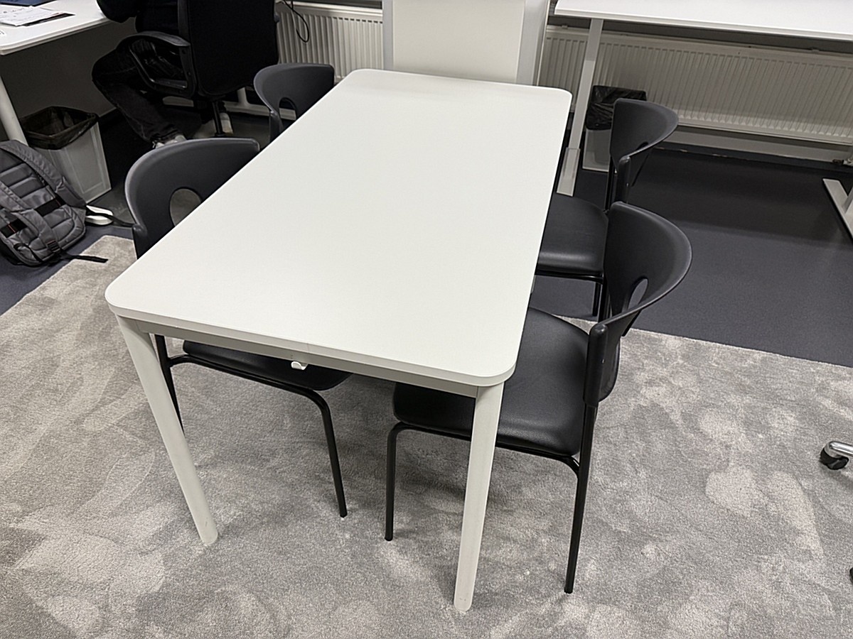 - Pöytä ja neljätuolia Syvyys 70 cm leveys 130 cm ja korkeus 75 cm