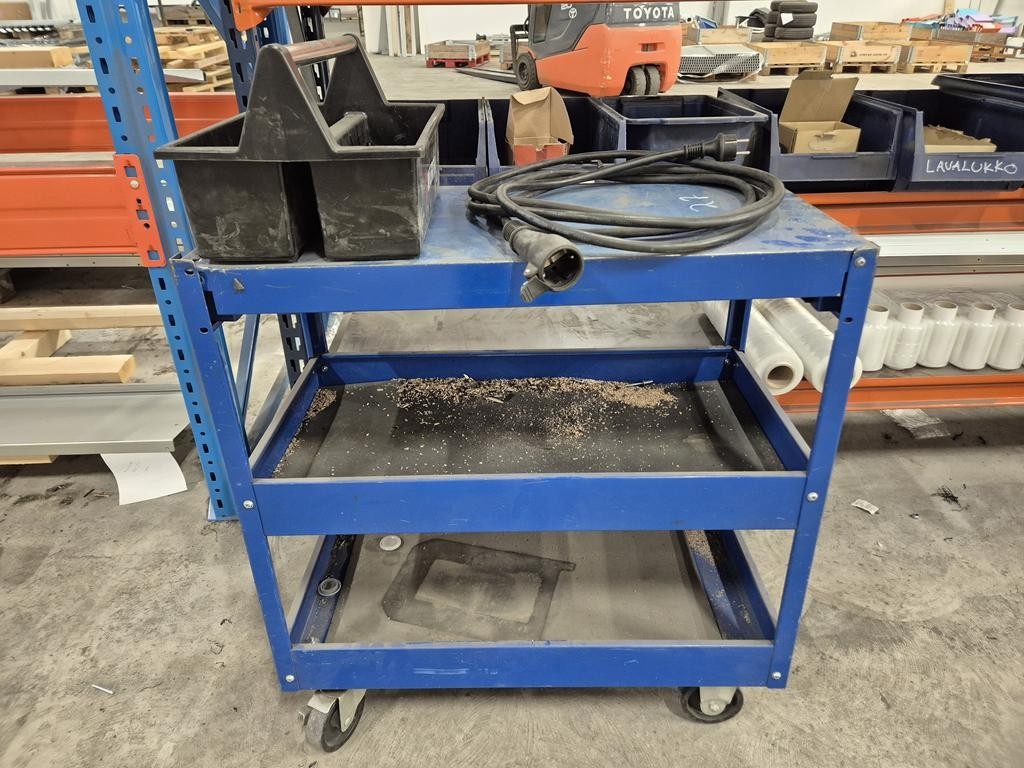 Myyntikohteet » 2. Botnia Staff Oy:n konkurssipesä (2745801-1), NOUTO SEINÄJOKI, 31.12.2025 » 27. Hylly tavaroineen + työkaluvaunu ja jakkara