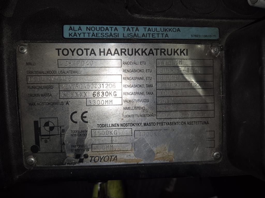 Myyntikohteet » 3. Botnia Staff Oy:n konkurssipesä (2745801-1), SEINÄJOKI, 07.01.2026 » 29. Dieseltrukki Toyota 42-7FD40