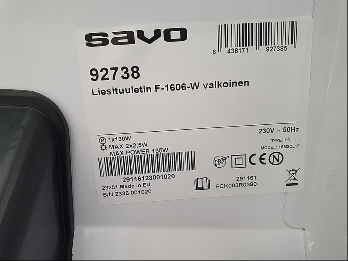 Myyntikohteet » 1. Apiankadun Konepistepojat Oy:n konkurssipesä (0967414-0), VALKEAKOSKI, 16.01.2026 » 017A. Liesituuletin Savo F-1606-W
