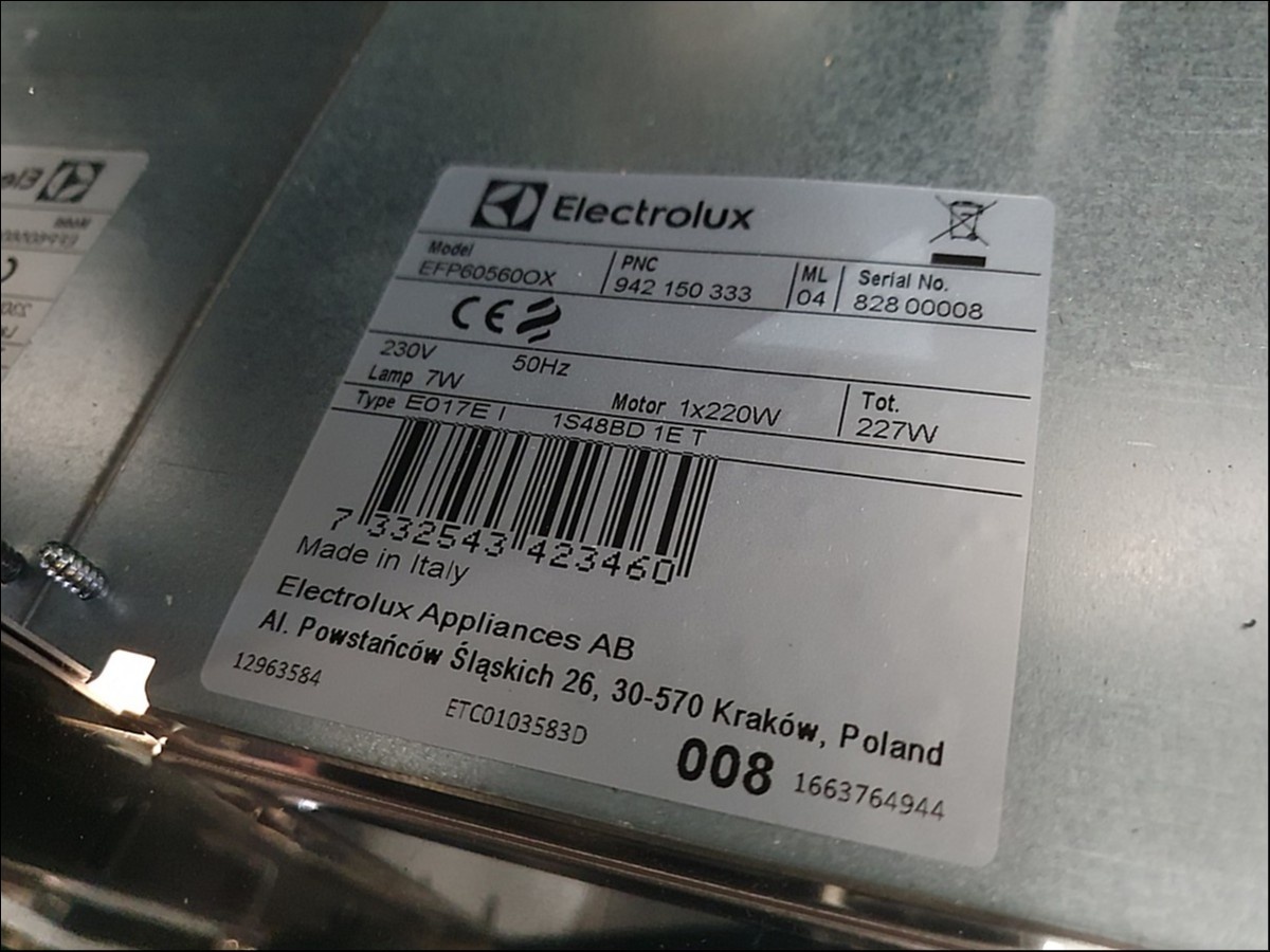 Myyntikohteet » 1. Apiankadun Konepistepojat Oy:n konkurssipesä (0967414-0), VALKEAKOSKI, 16.01.2026 » 020. Liesituuletin Electrolux EFP60560OX