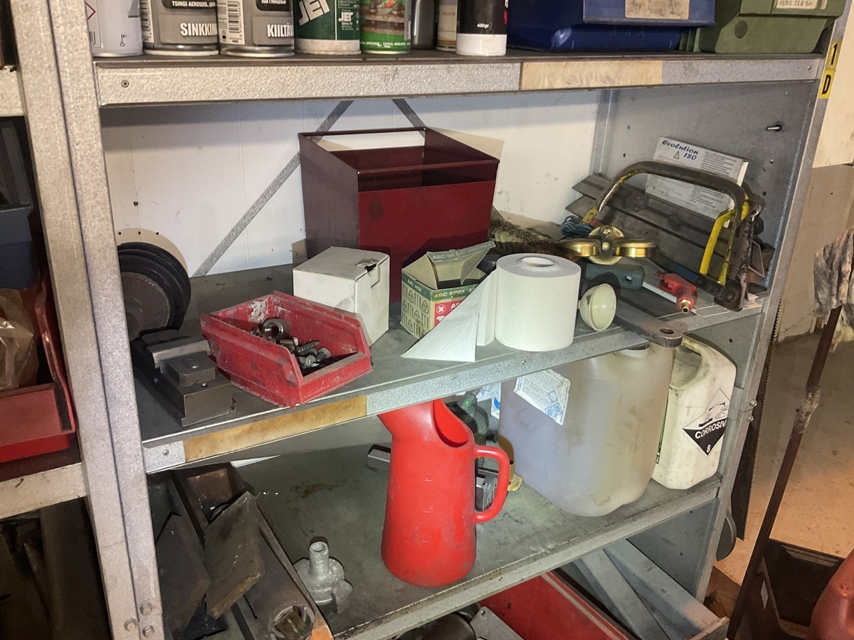 Myyntikohteet » 8. Warmos Lämmitys Oy:n konkurssipesä, MUURLA (0871192-3), 10.01.2026 » K 35. Metallinen hylly + työkalut ja tarvikkeet