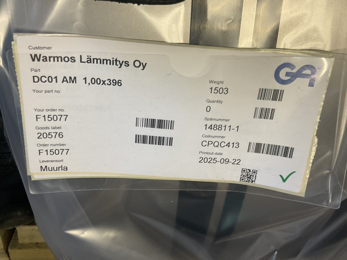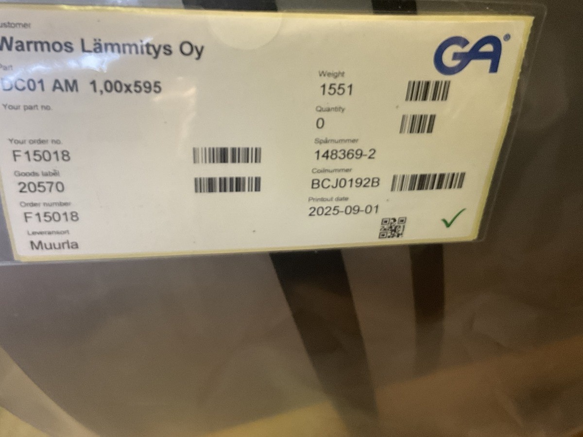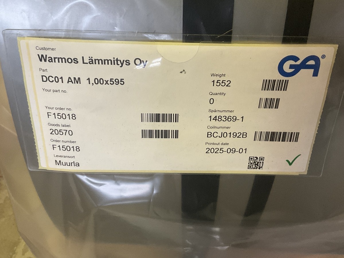 Myyntikohteet » 8. Warmos Lämmitys Oy:n konkurssipesä, MUURLA (0871192-3), 10.01.2026 » K 42. Kylmävalssatut teräsrullat (4 kappaletta. Paino yhteensä 5094 kg)